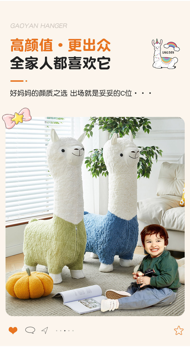 인터넷 연예인 알파카 좌석 거실 장식품 동물 의자 신발 교환 의자 어린이 작은 의자 크리 에이 티브 만화 동물 의자
