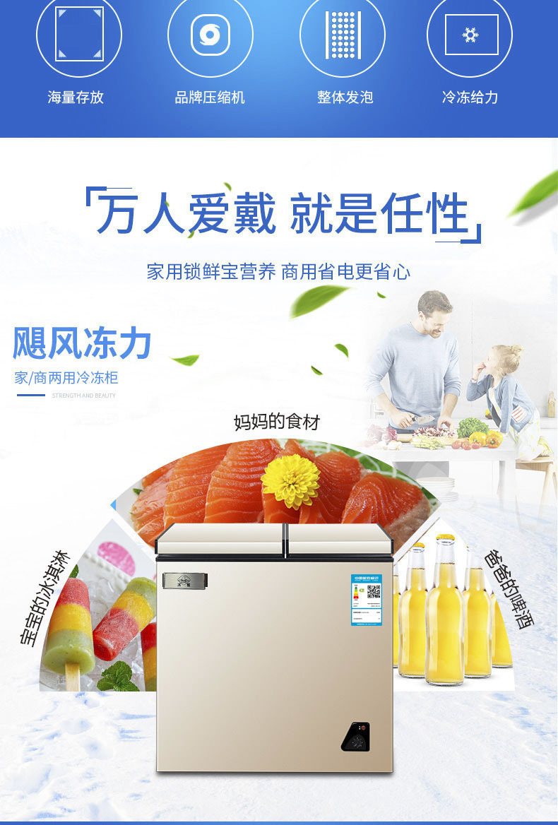 프리즈프리 소형 냉동고, 소형 가정용 완전 냉동 및 냉장 겸용 캐비닛, 미니 상업용 냉동고, 1급 에너지 절약스토어 가기
