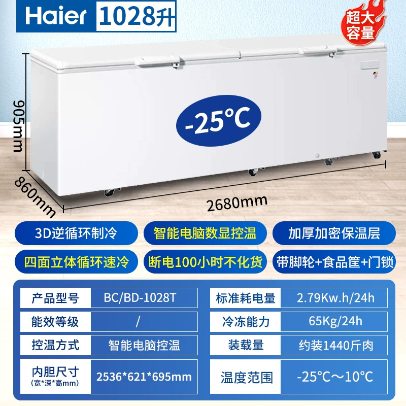 하이얼 냉동고 상업용 수평 냉동고 디스플레이 캐비닛 냉장 캐비닛 슈퍼마켓 식품 캐비닛 냉동고 신선 유지 냉동고스토어 가기