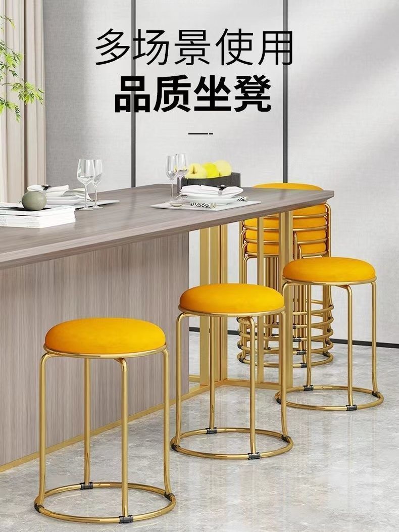 북유럽 의자 홈 현대 간단한 강철 라운드 의자 식탁 작은 의자 식탁 쌓을 수있는 가벼운 럭셔리 게으른 벤치