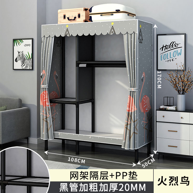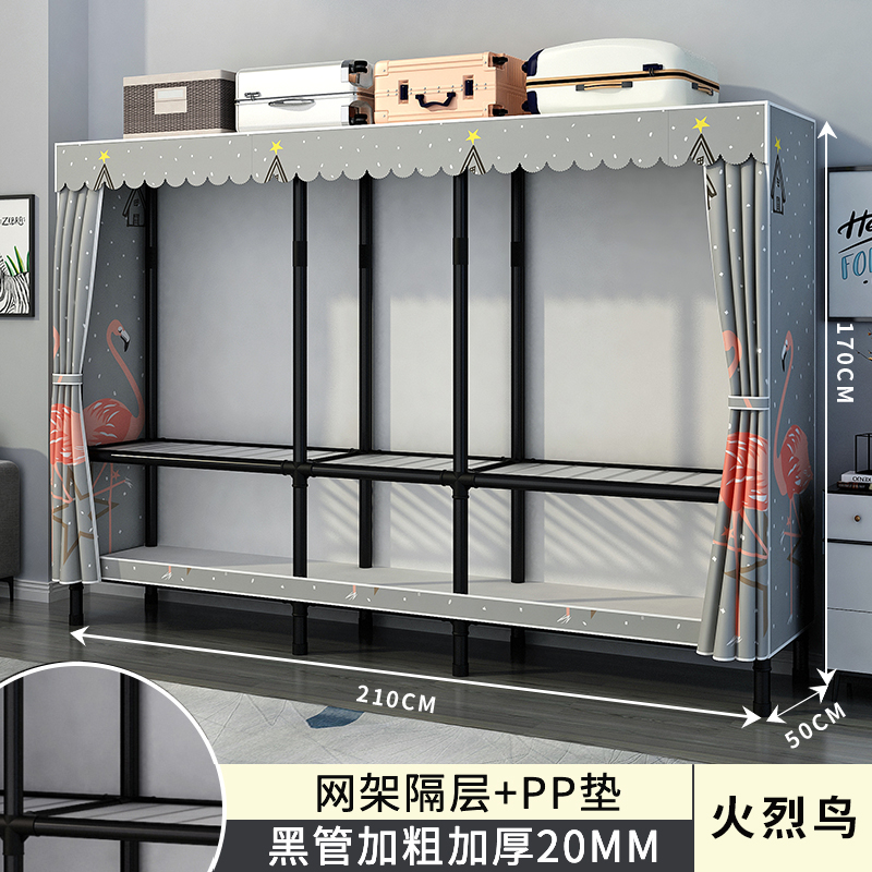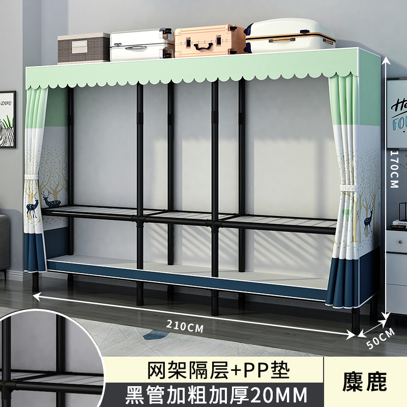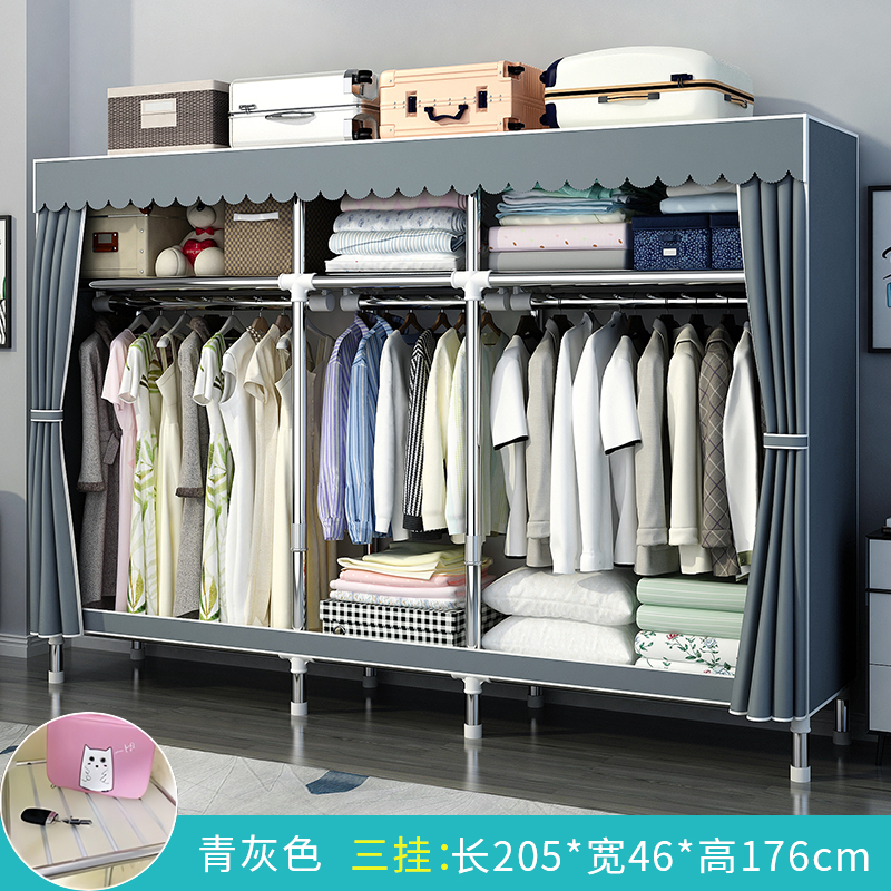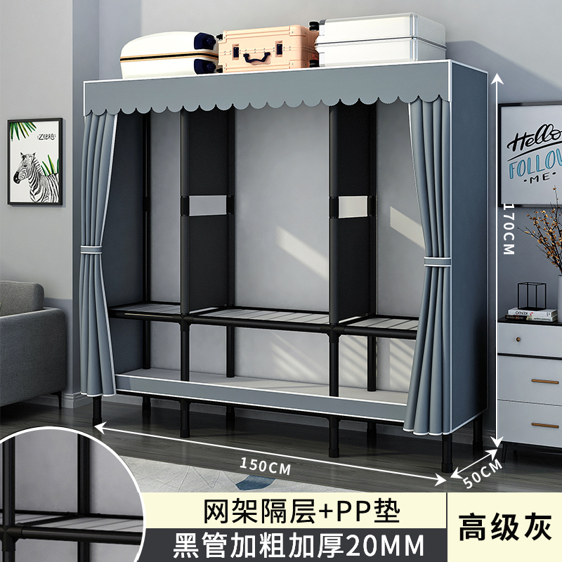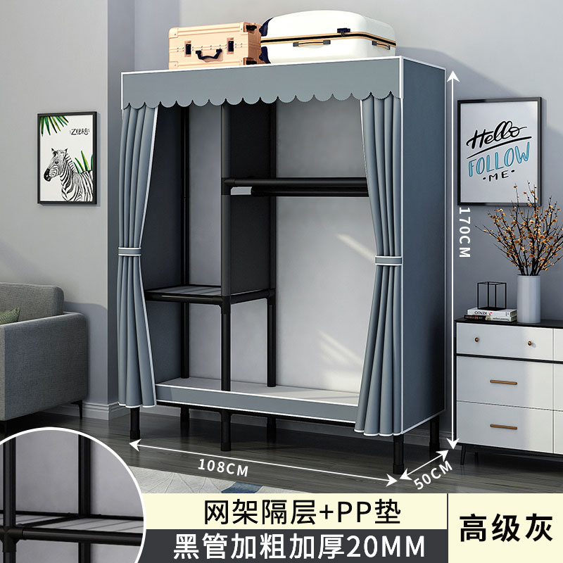 간단한 옷장 홈 침실 조립 천 옷장 강철 파이프 강력하고 내구성이 뛰어난 임대 주택 옷장 캐비닛 경제적스토어 가기