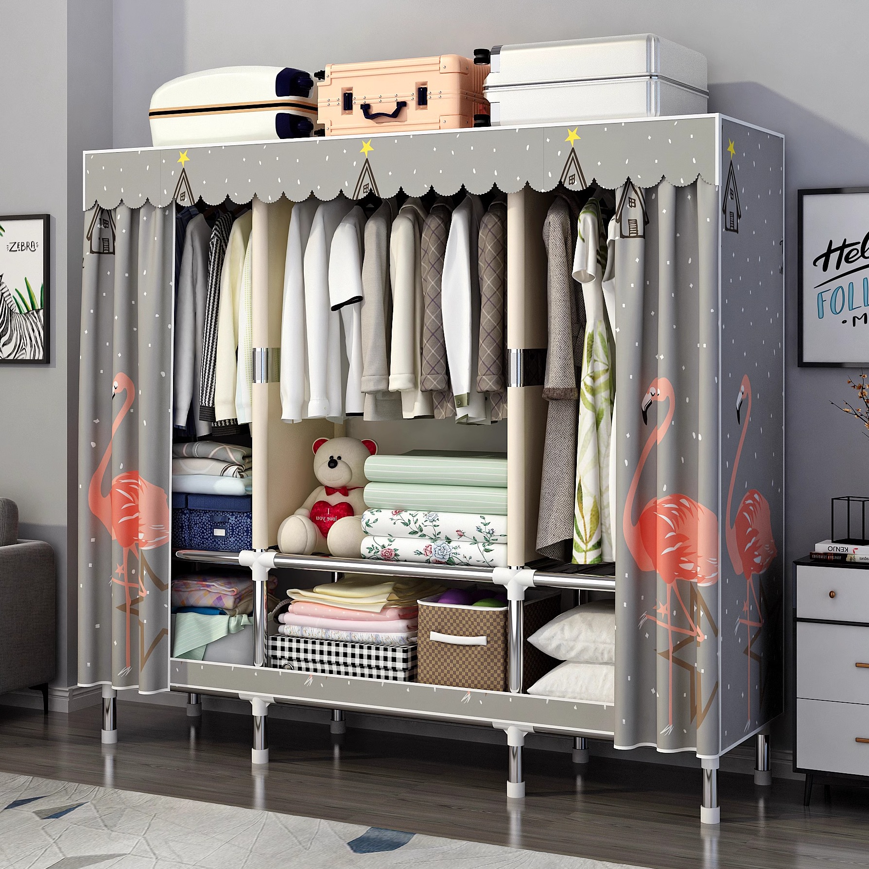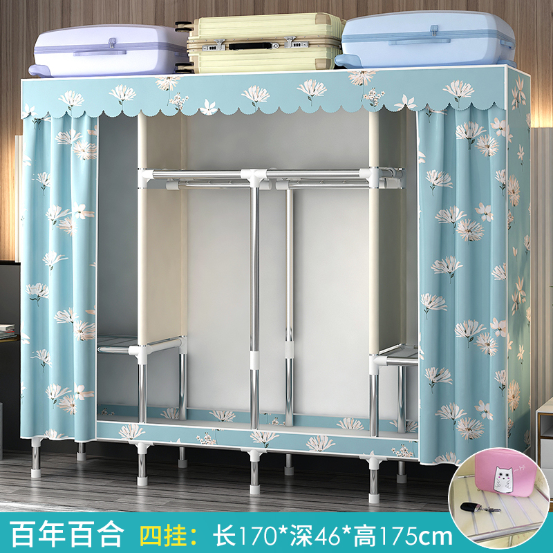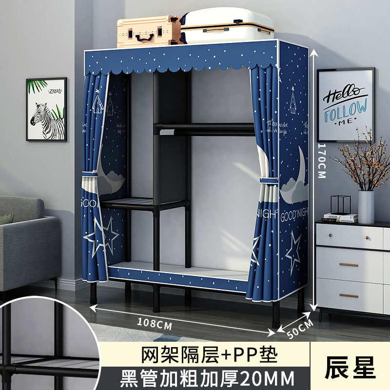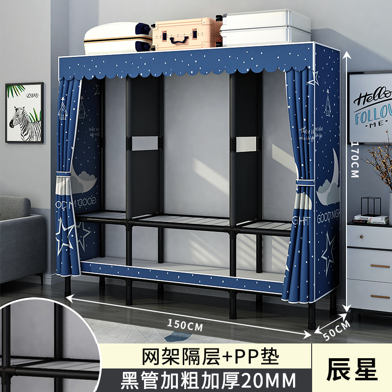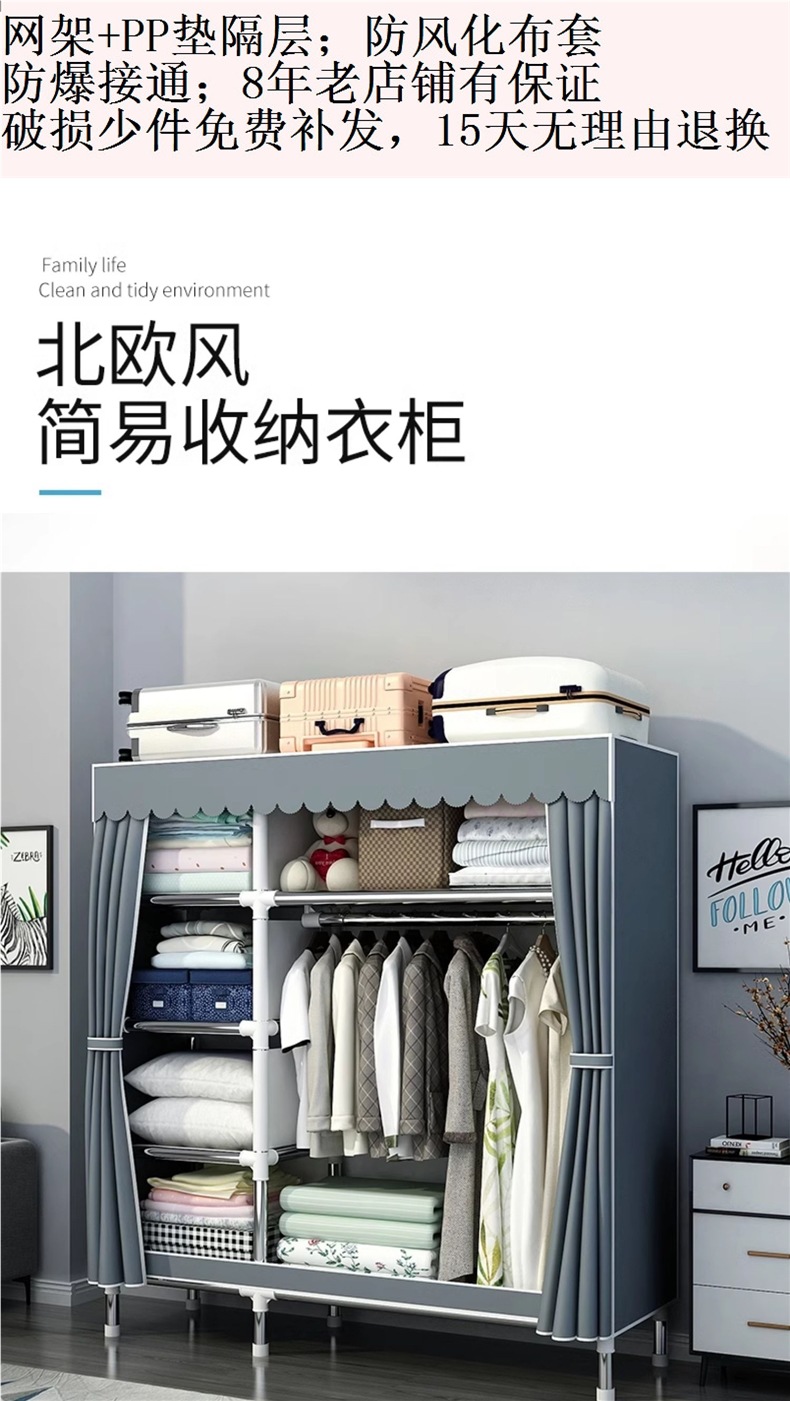간단한 옷장 홈 침실 조립 천 옷장 강철 파이프 강력하고 내구성이 뛰어난 임대 주택 옷장 캐비닛 경제적스토어 가기
