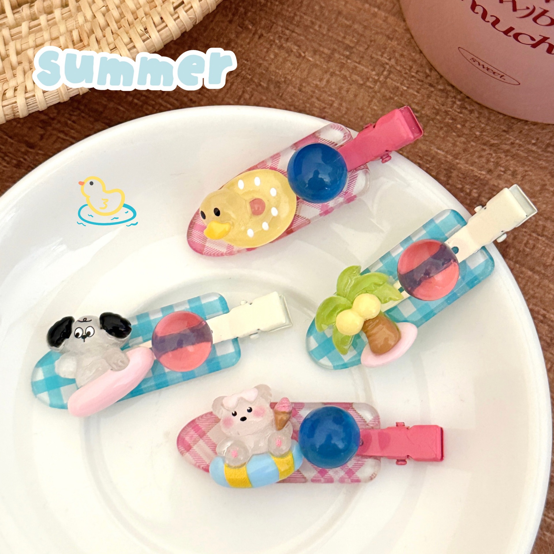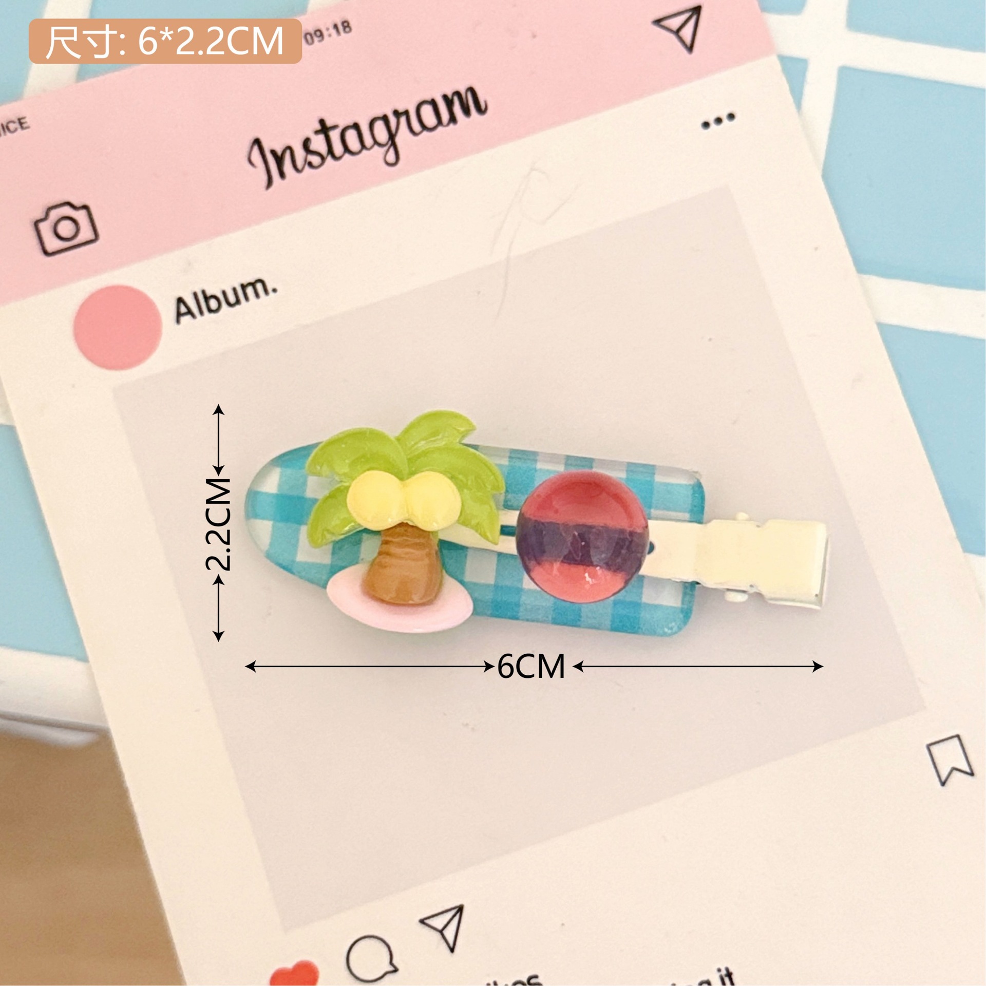 • 3 # 파란색 격자 무늬 머리핀 - 여름 코코넛 나무