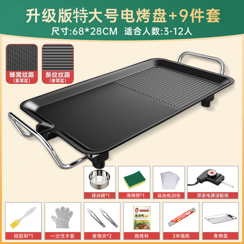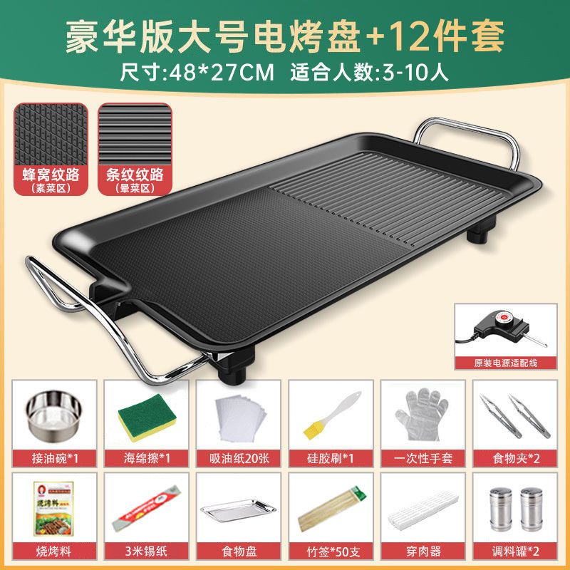 • 무연 철판 전기 그릴 [특대형] 8~10인용 - 10% 사용자 선택: 선물 없음 [기본 버전]