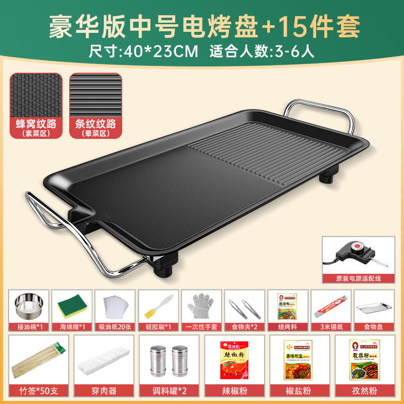 • 3~4인에게 적합한 무연 철판 전기 그릴 [중형] - 15% 사용자 선택: 3종 세트 [더블 버전]