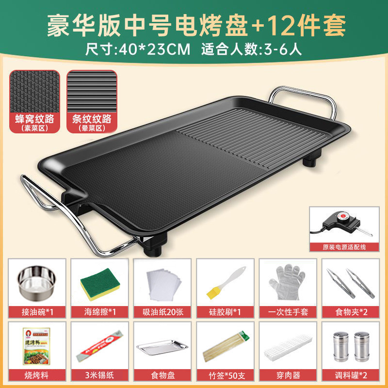 • 무연 철판 전기 그릴 [특대형] 8~10인용 - 25% 사용자 선택: 6종 세트 [가정용 버전]
