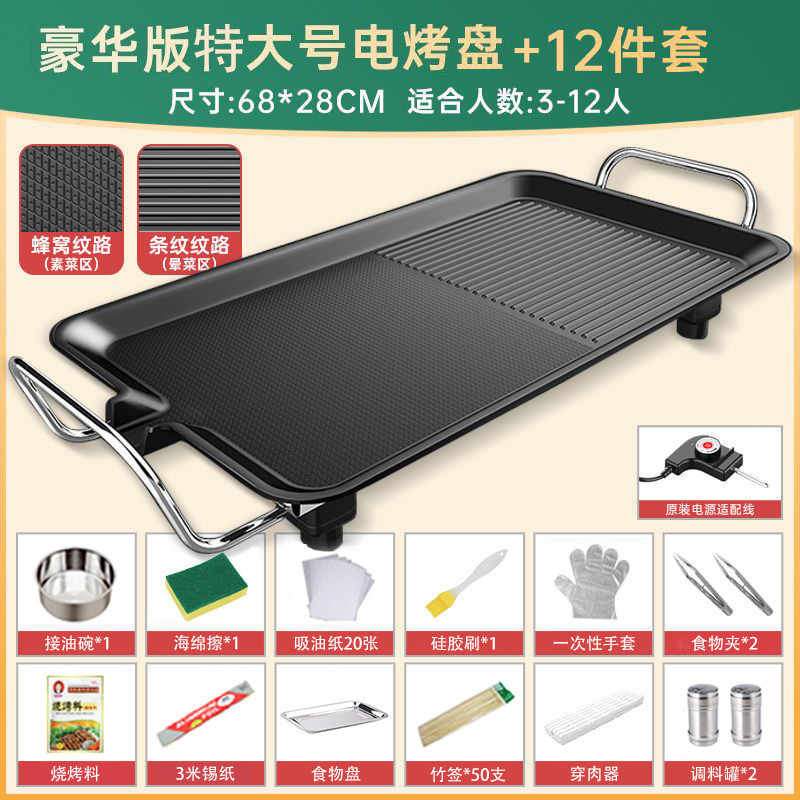 • 무연 철판 전기 그릴 [특대형] 8~10인용 - 15% 사용자 선택: 3종 세트 [더블 버전]