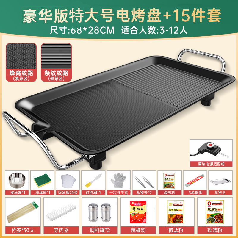• 7~8인에게 적합한 무연 철판 전기 그릴 [대형] - 15% 사용자 선택: 3종 세트 [더블 버전]