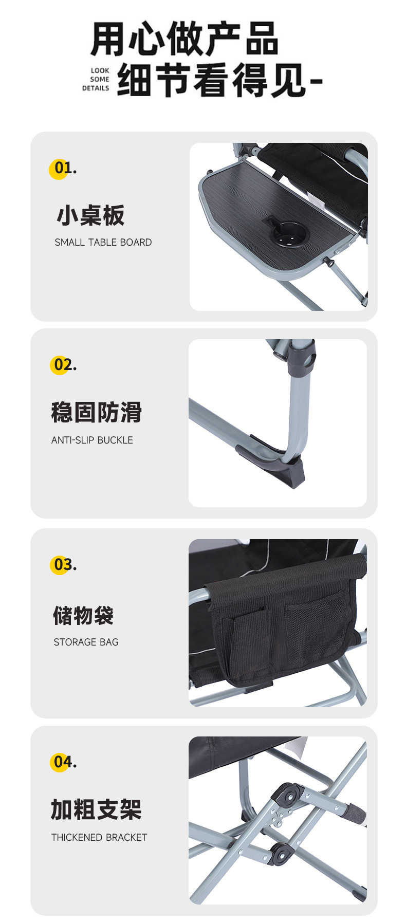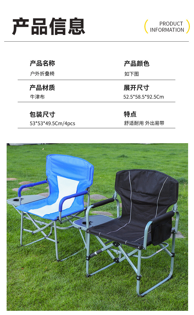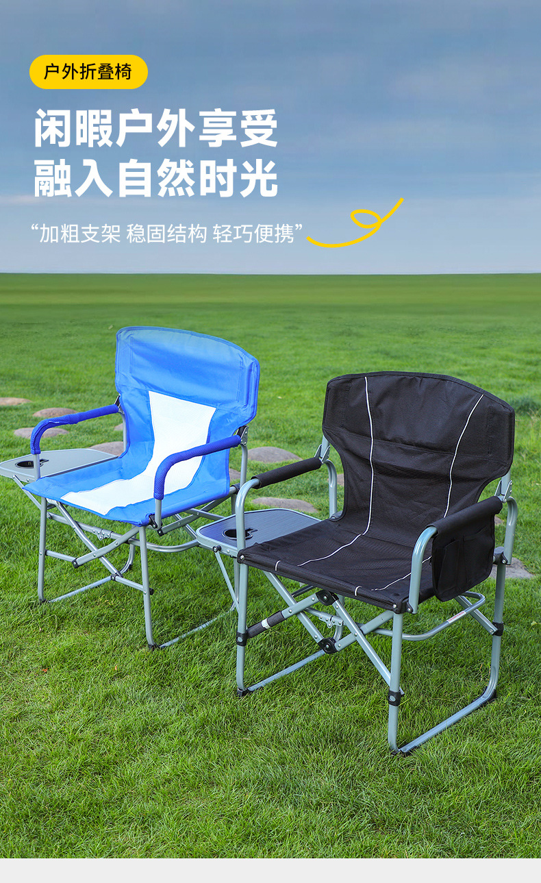 높은 내 하중 접이식 의자 레저 감독 의자 다기능 확대 낚시 안락 의자 작은 테이블 보드가있는 야외 의자스토어 가기