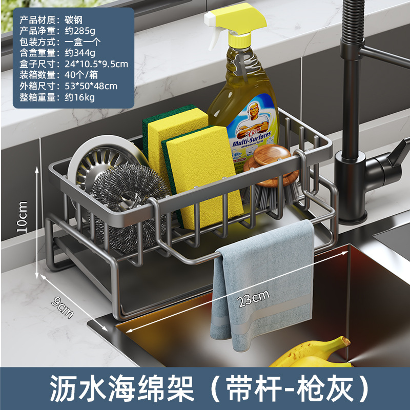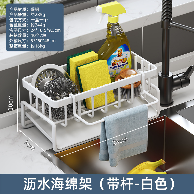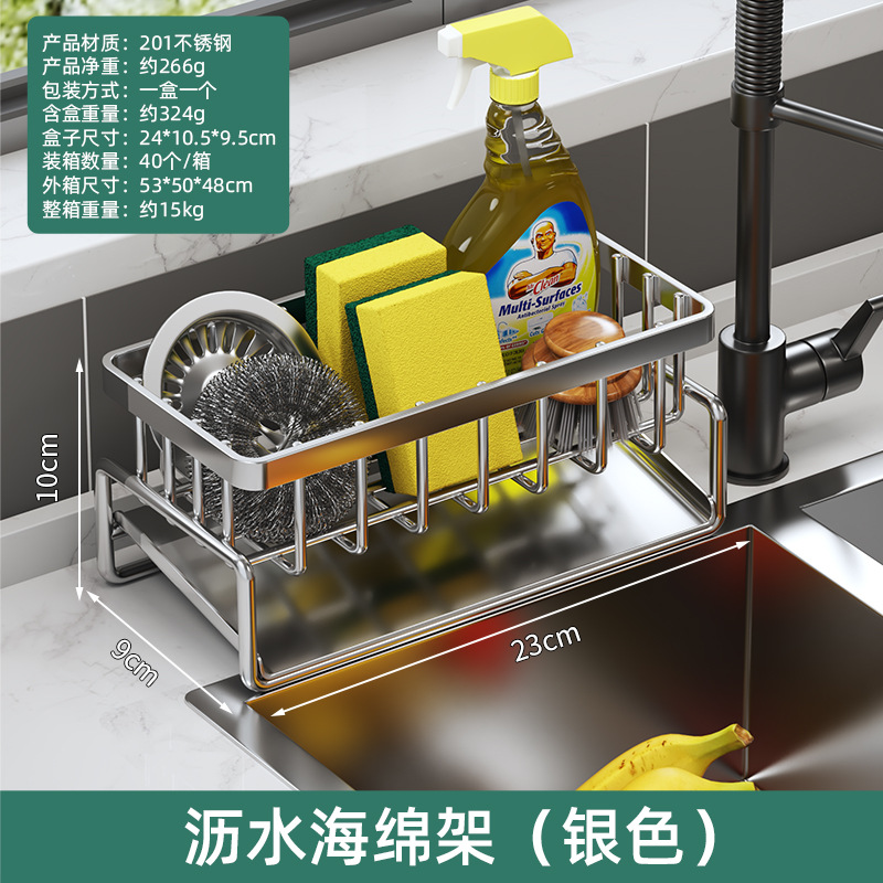 주방 수납 선반, 가정용 스펀지 배수구, 수도꼭지, 스테인레스 스틸 걸레 걸이, 싱크대 주방 세제 수납 선반