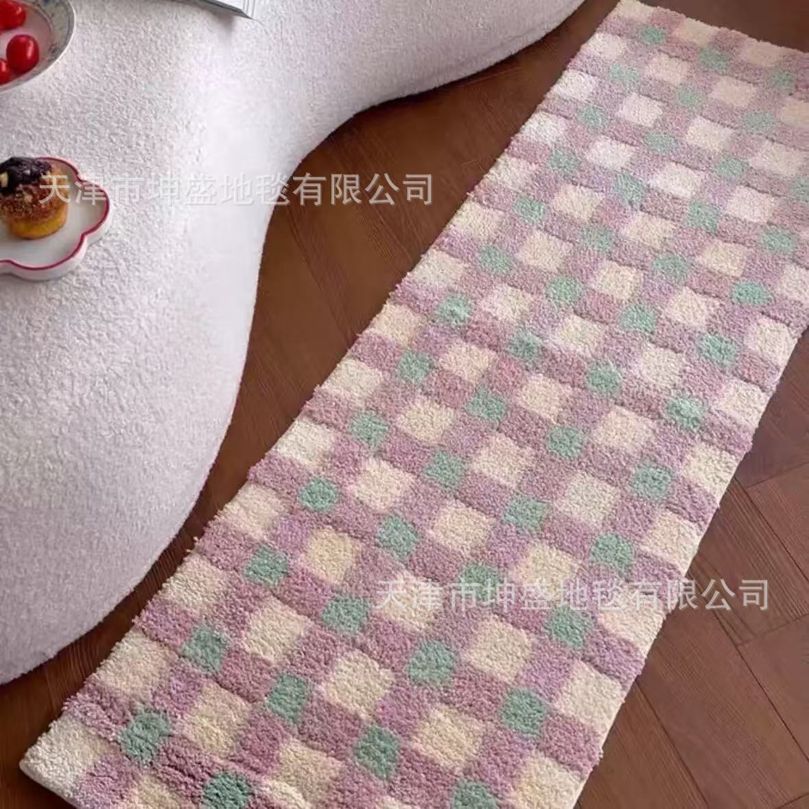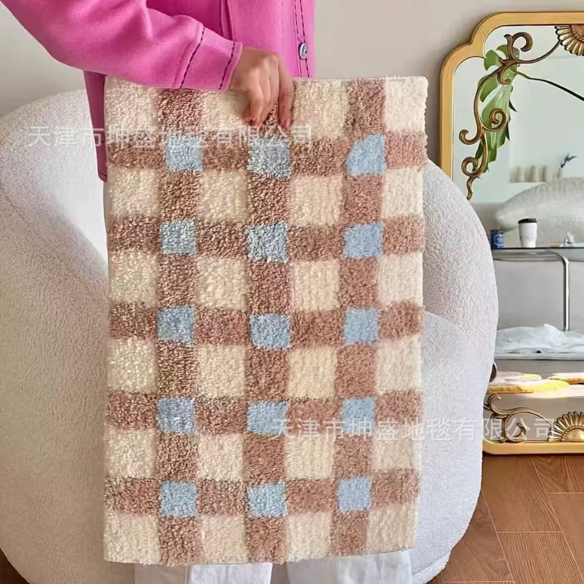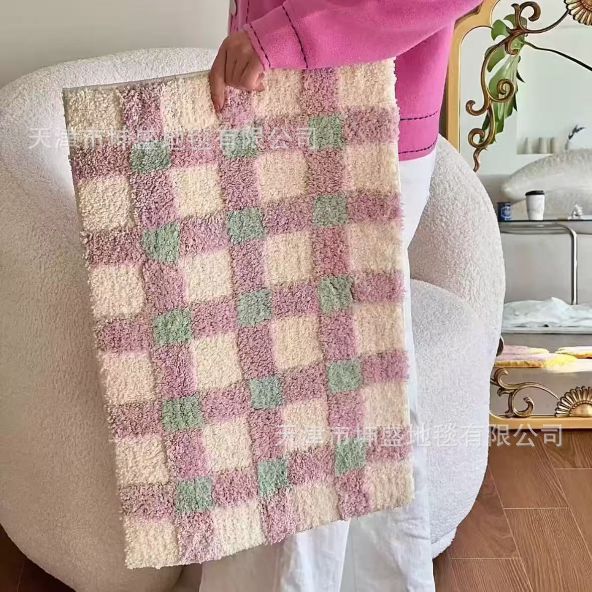 간단한 격자 무늬 플록 처리된 얼룩 방지 바닥 매트 발코니 매트 간편한 관리 침실 침대 옆 담요 홈 거실 소파 커피 테이블 매트