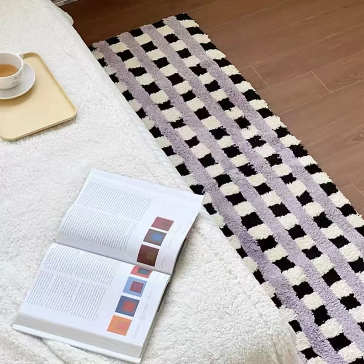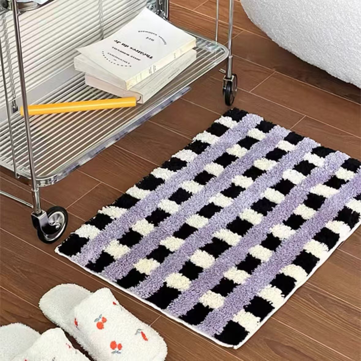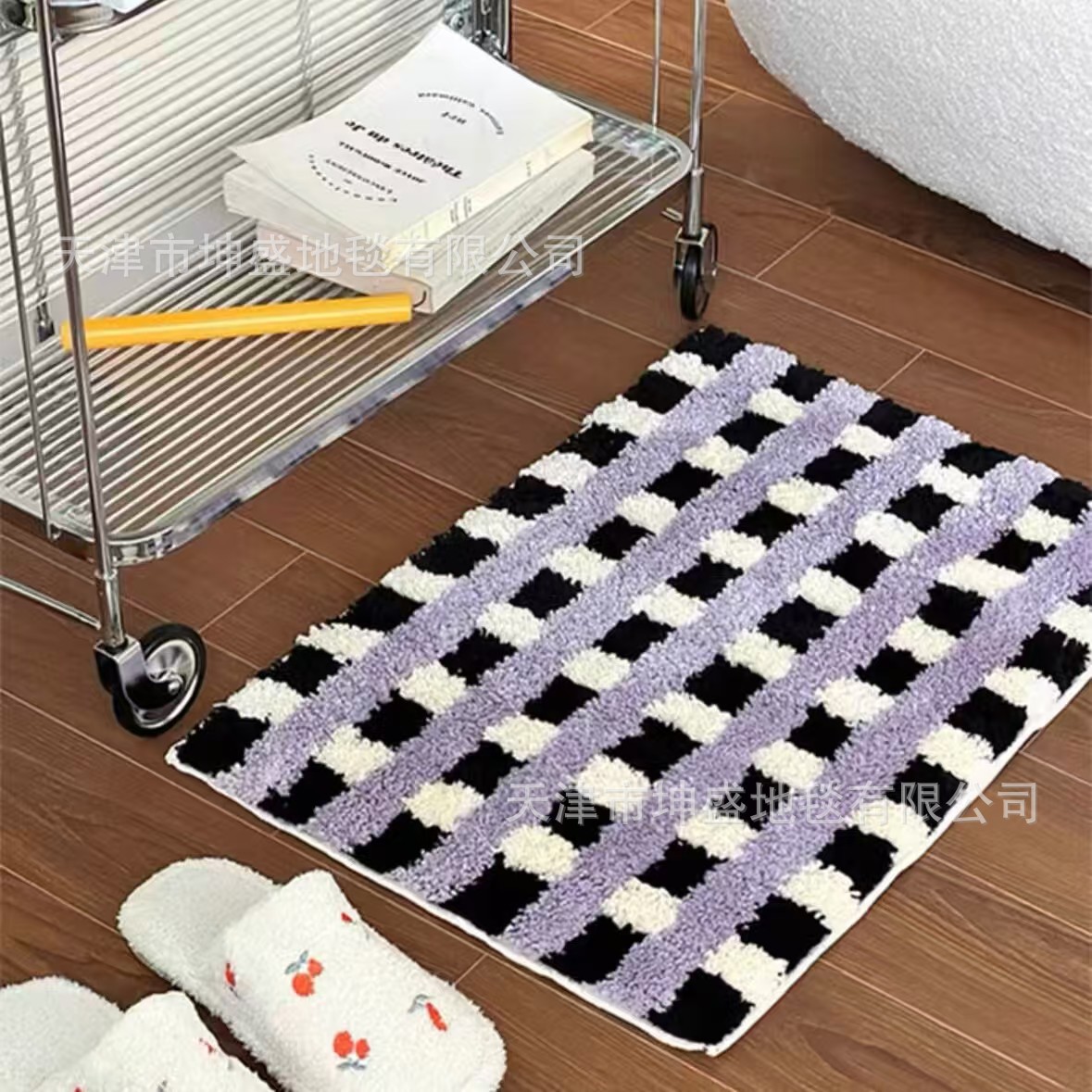 간단한 격자 무늬 플록 처리된 얼룩 방지 바닥 매트 발코니 매트 간편한 관리 침실 침대 옆 담요 홈 거실 소파 커피 테이블 매트