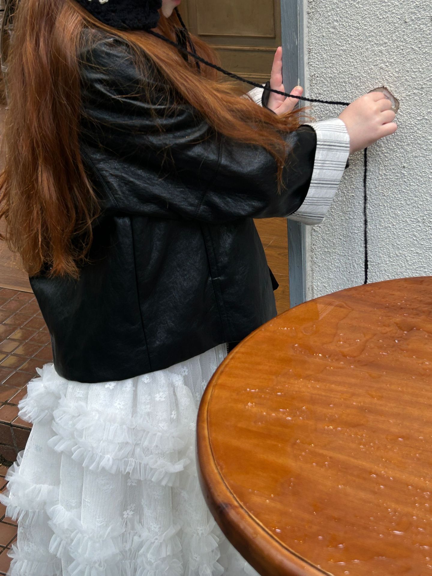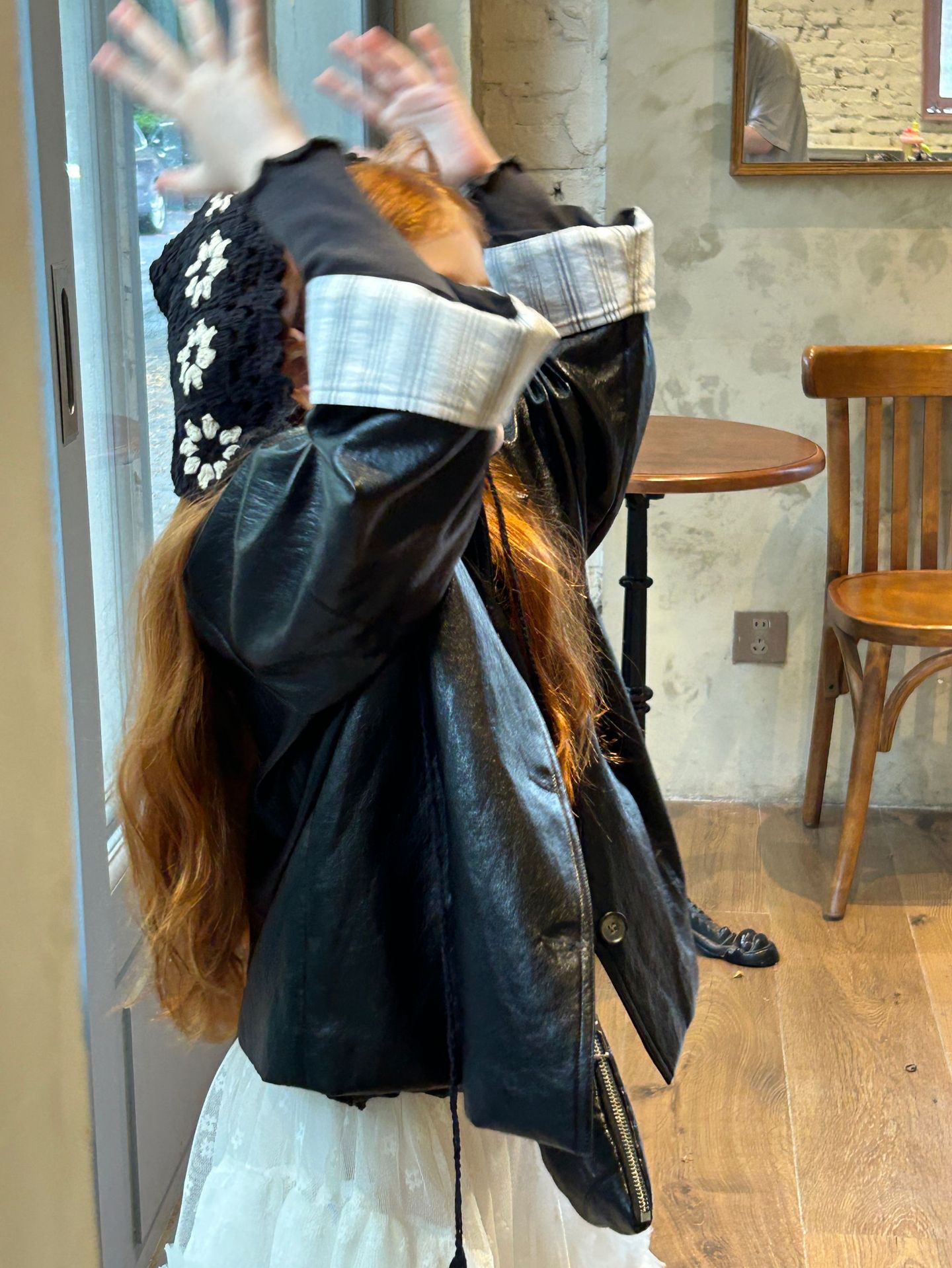2025 새로운 가을 스타일 여아 패션 심플하고 다재다능한 커프스 할인 스트라이프 블랙 라펠 가죽 자켓 + 가방
