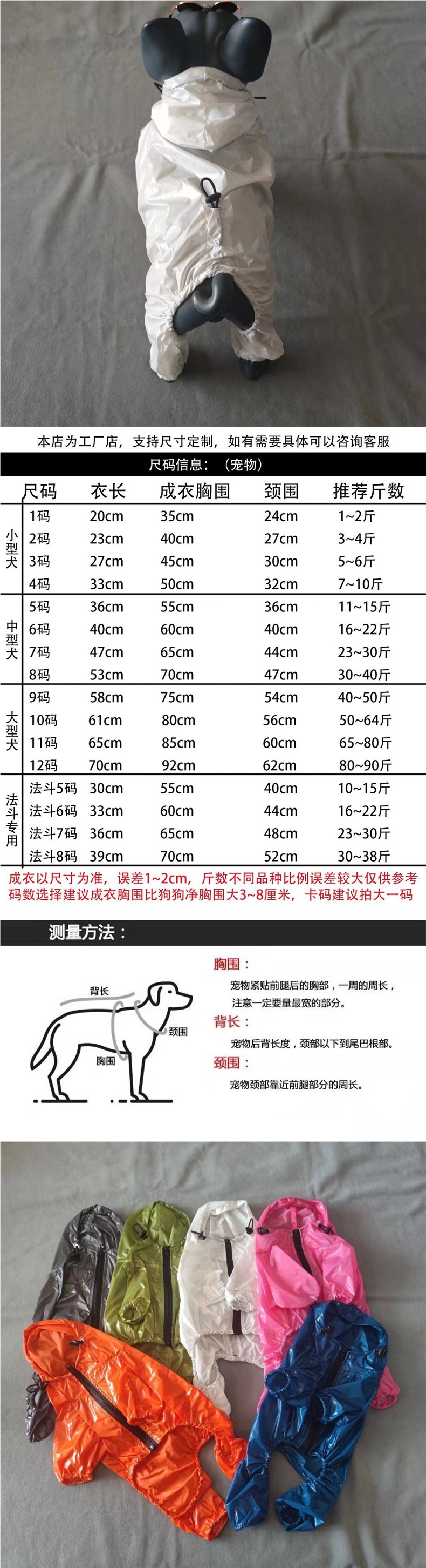 강아지 네발 비옷, 전신 방수, 방오, 초박형, 답답함 방지, 캔디 컬러, 프렌치 불독, 시바견, 테디 코기 퍼