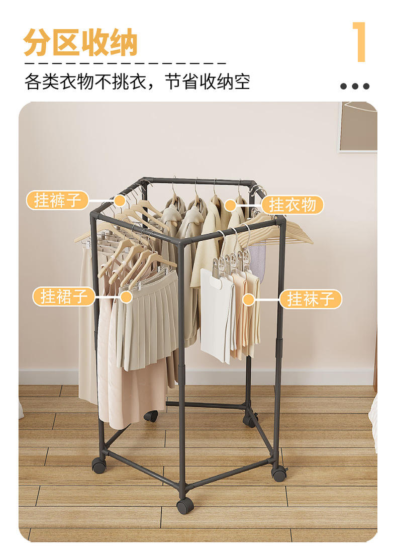 Xiyin TEMU 다기능 빨래 건조대 바퀴 달린 바닥 옷걸이 옷걸이 침실 발코니 휴대용 보관함