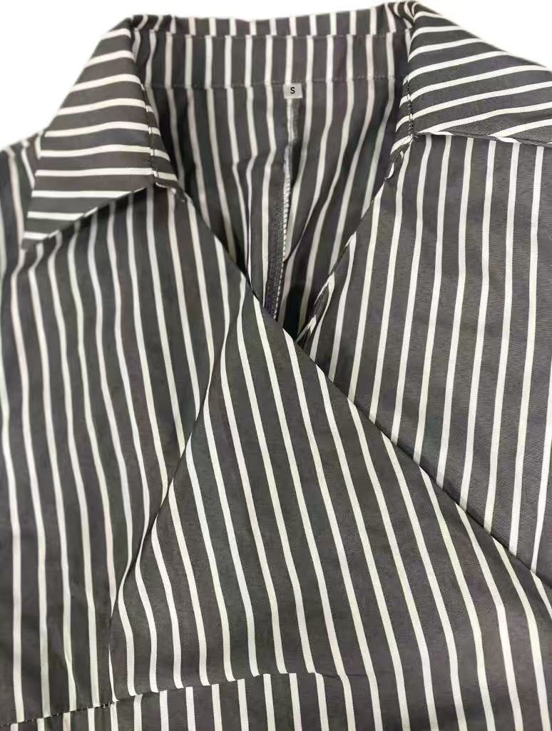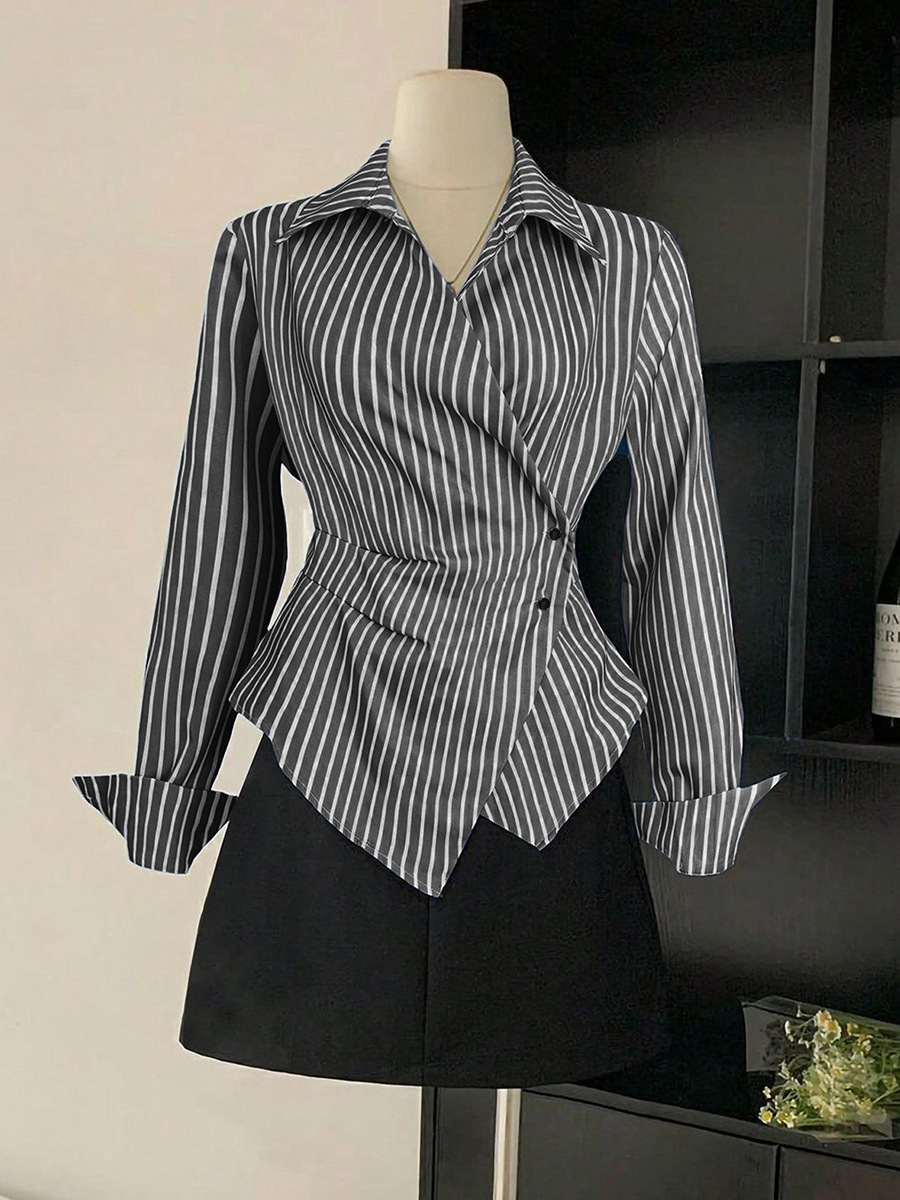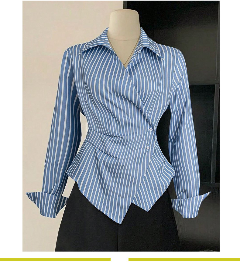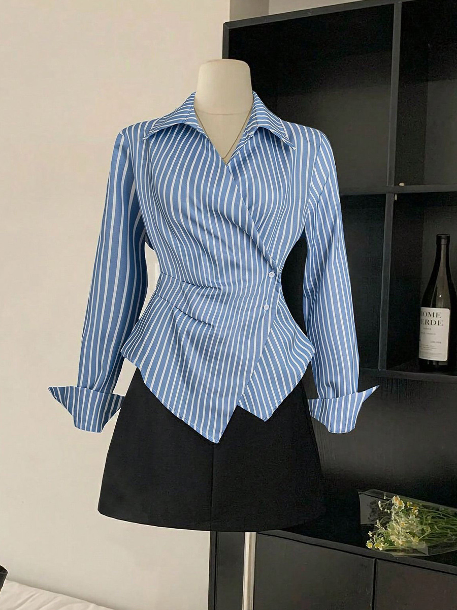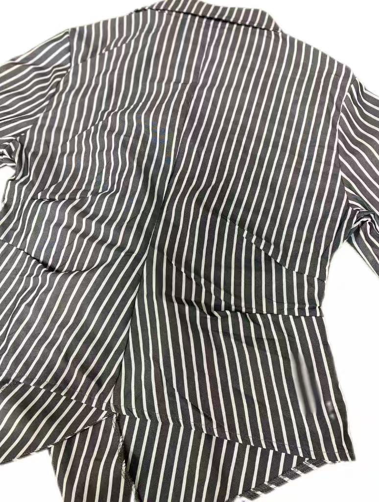 국경 간 대외 무역 여성 기질 스트라이프 셔츠 2025 가을 새로운 유럽과 미국 스타일의 긴팔 셔츠 카디건 불규칙스토어 가기