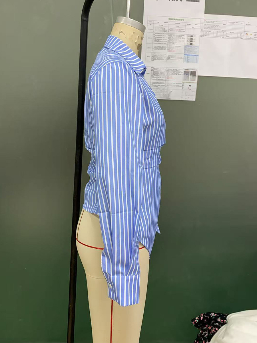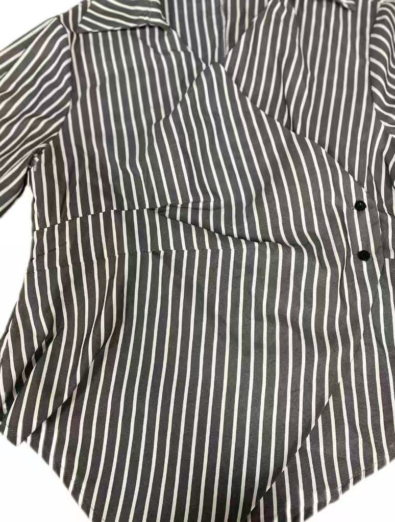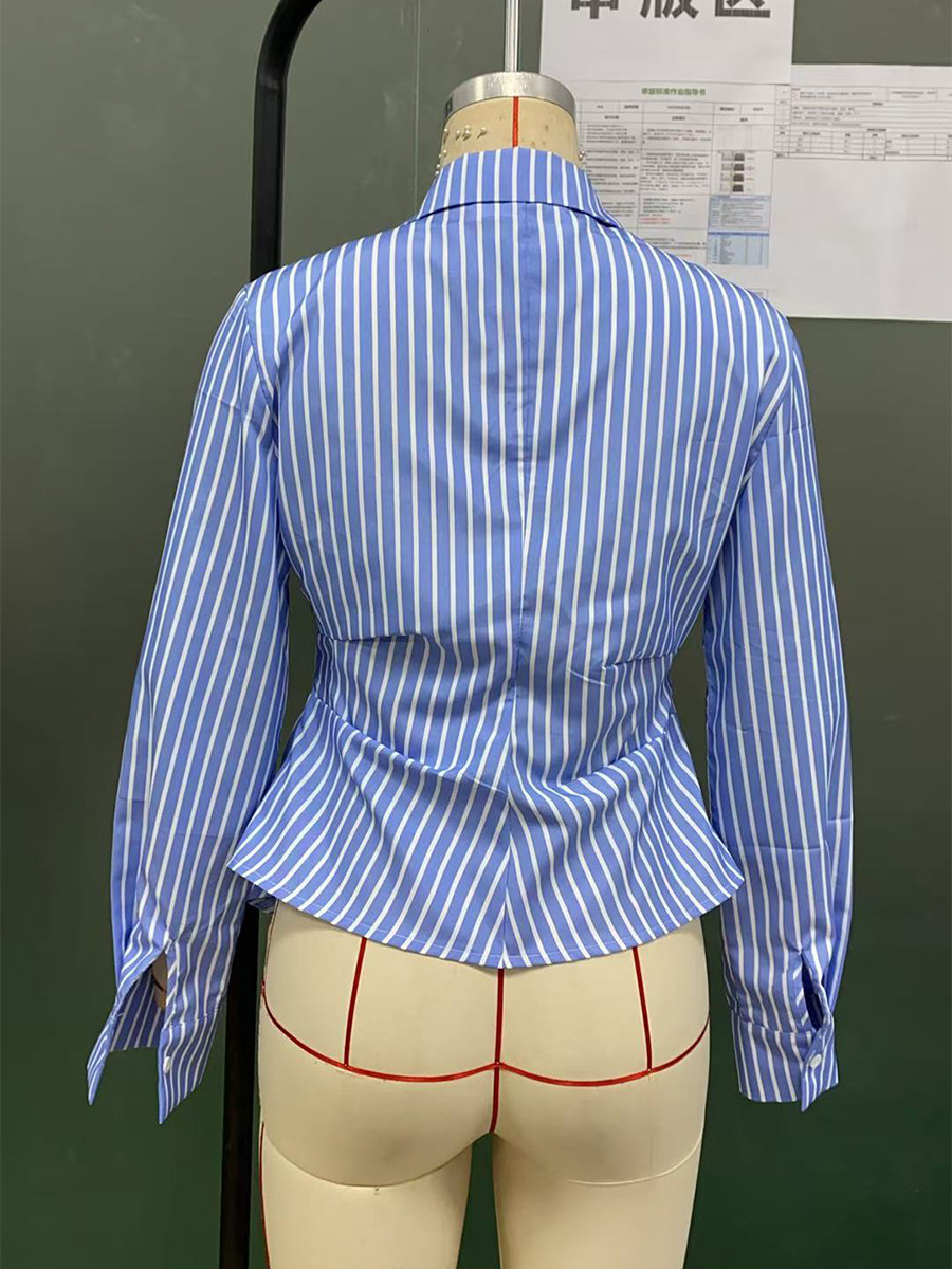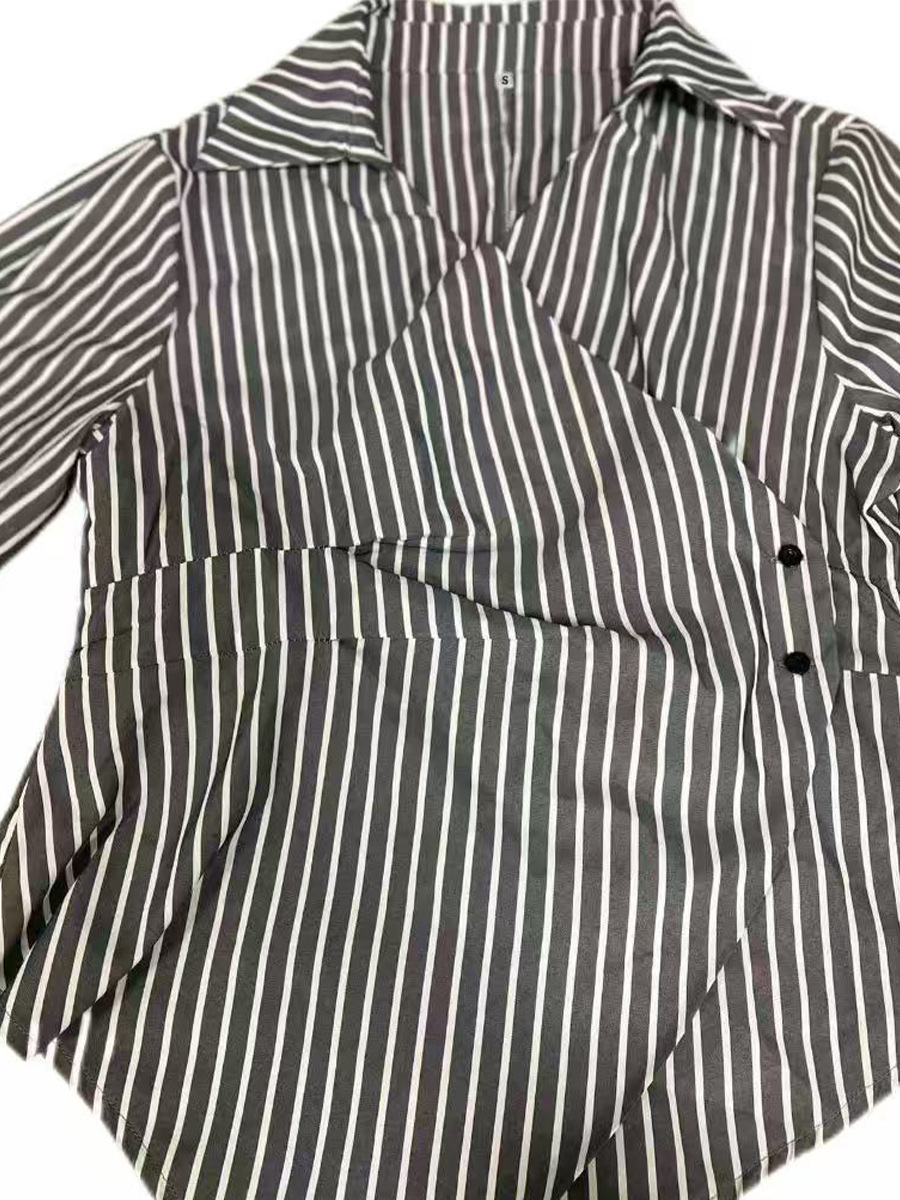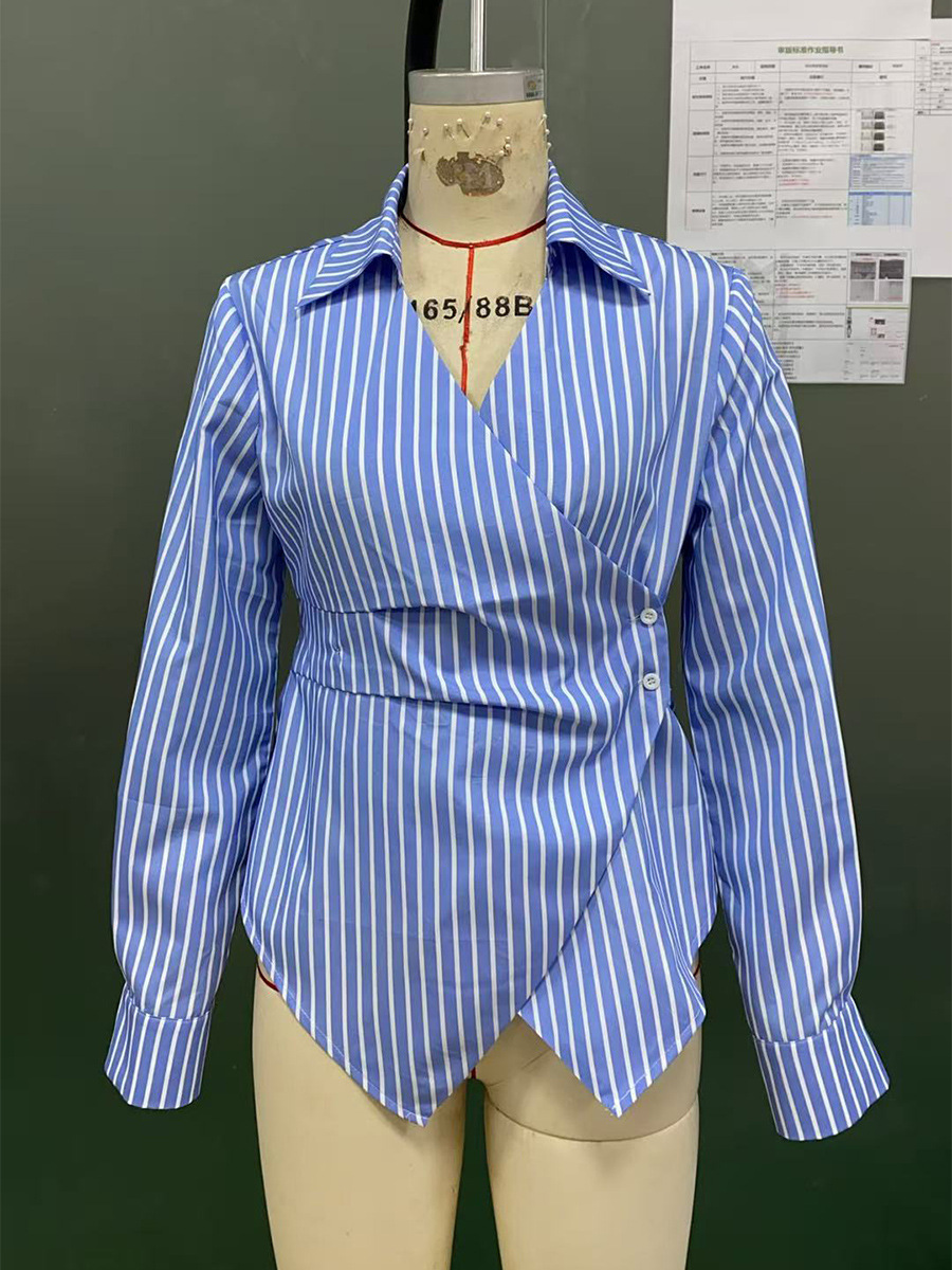 국경 간 대외 무역 여성 기질 스트라이프 셔츠 2025 가을 새로운 유럽과 미국 스타일의 긴팔 셔츠 카디건 불규칙스토어 가기
