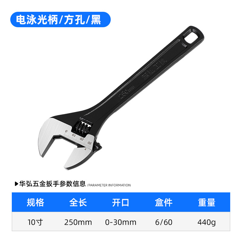 제조업체 도매 조절 렌치 6인치 8인치 10inch 12inch 전기영동 광택 손잡이 사각 구멍 대형 조절 렌치스토어 가기