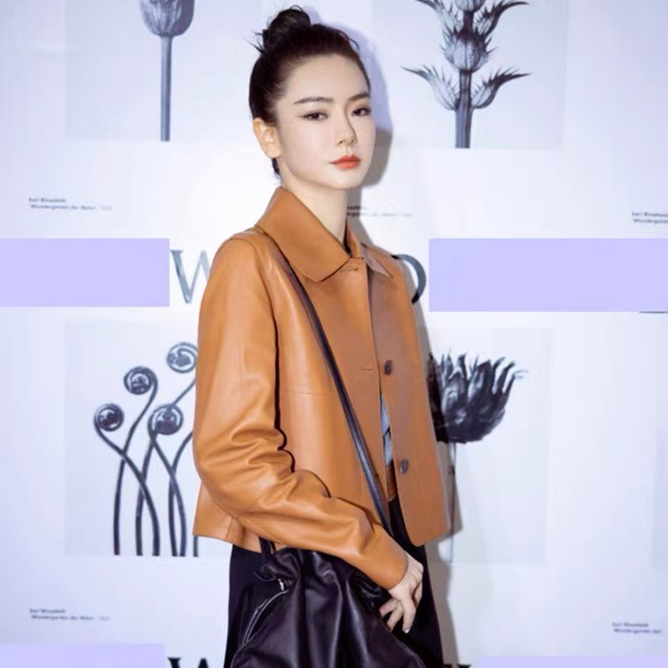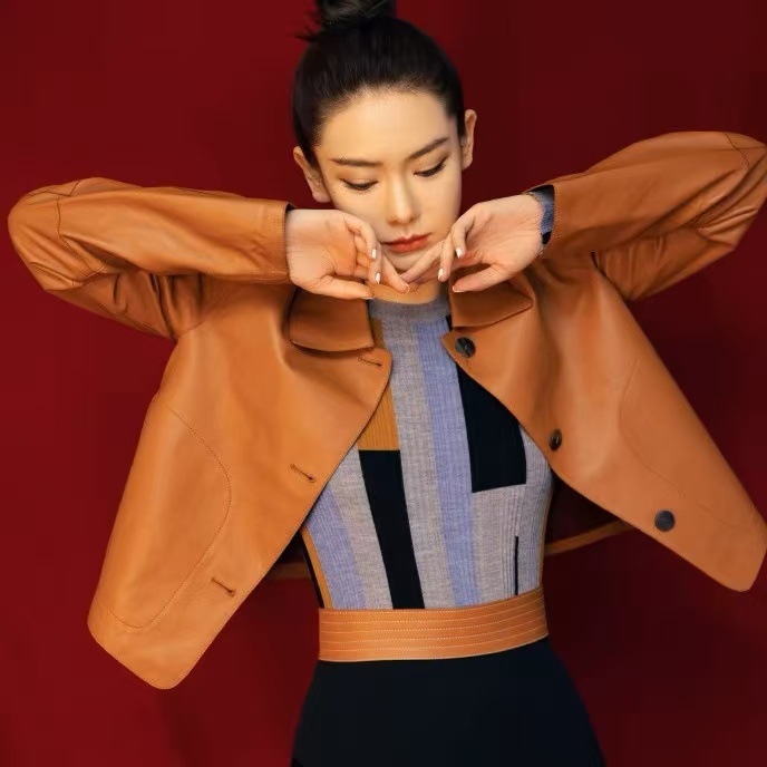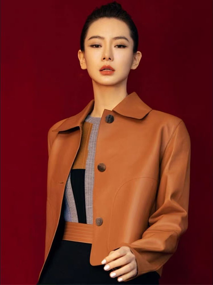 Qi Wei의 같은 스타일 PU 가죽 자켓 여성 짧은 한국 스타일 하이 엔드 여성 가죽 자켓 오토바이 자켓 2025 여성 가을