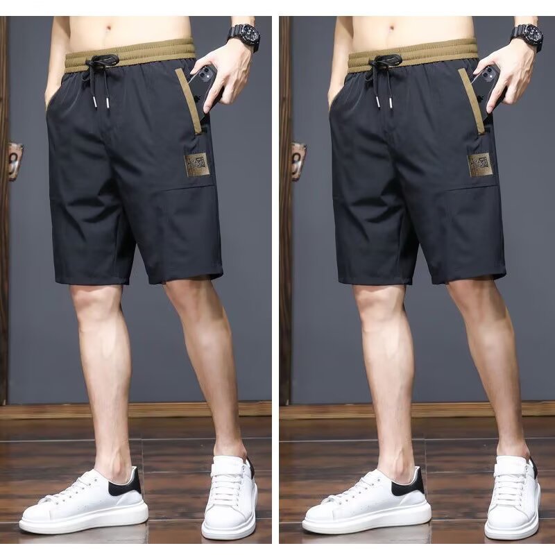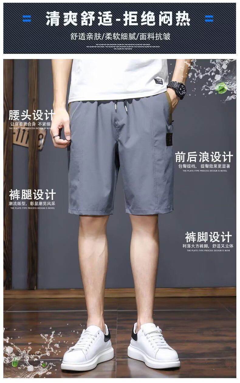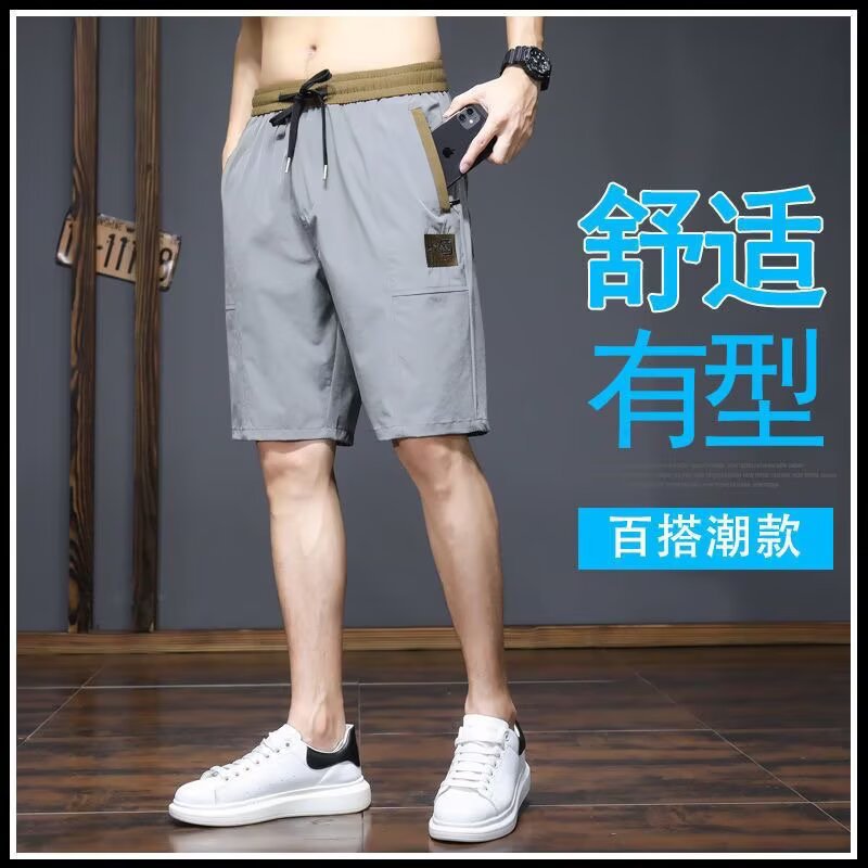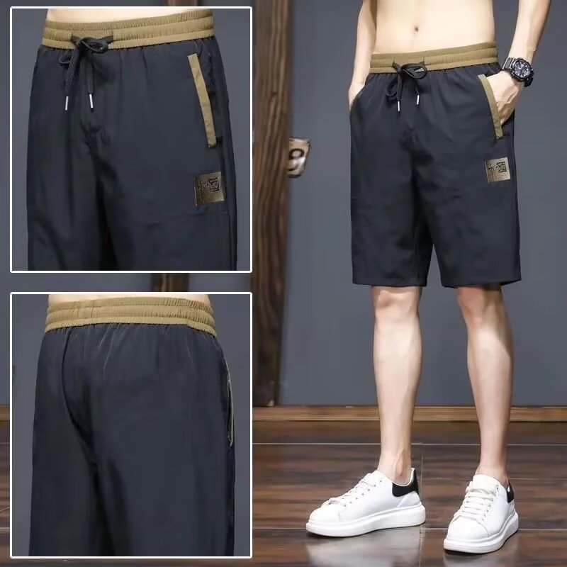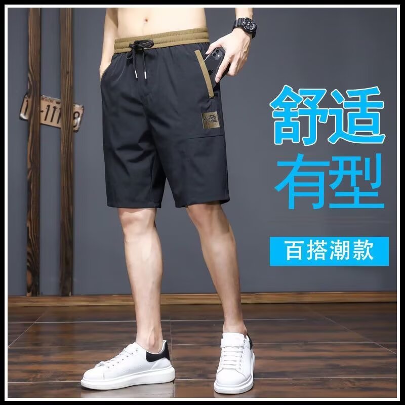 아이스 실크 반바지 남성 2025 여름 신작 루즈 대형 신축성 있는 허리 신축성 있는 런닝 팬츠 내셔널 패션 5부 바지스토어 가기