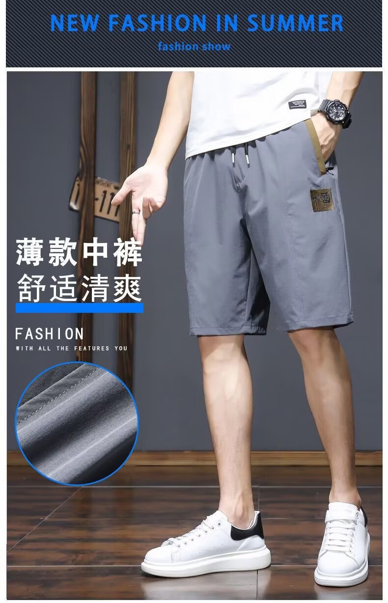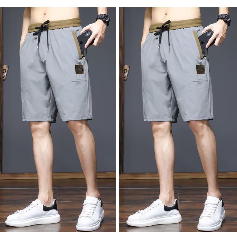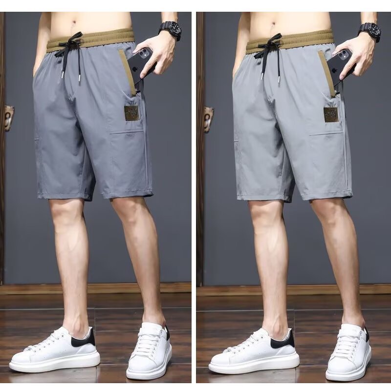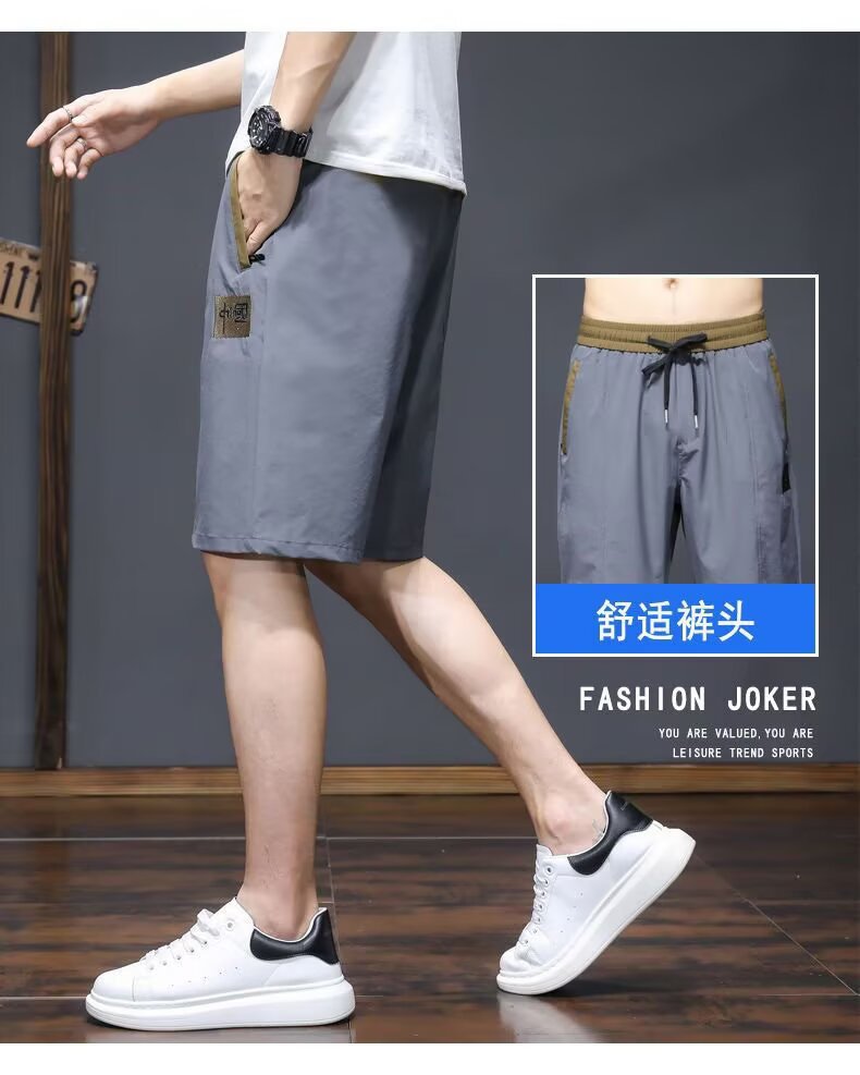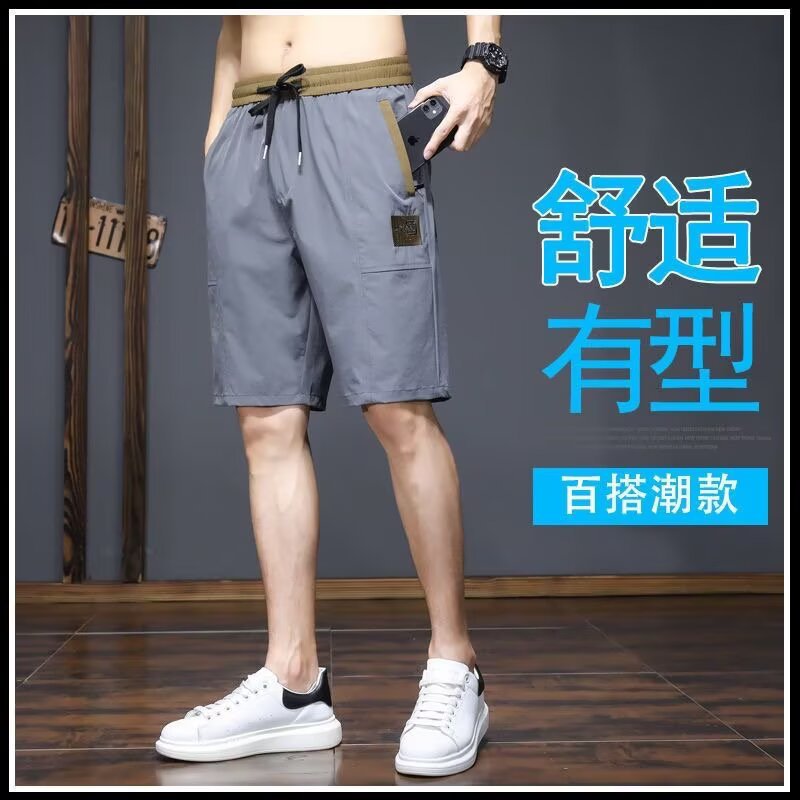 아이스 실크 반바지 남성 2025 여름 신작 루즈 대형 신축성 있는 허리 신축성 있는 런닝 팬츠 내셔널 패션 5부 바지스토어 가기