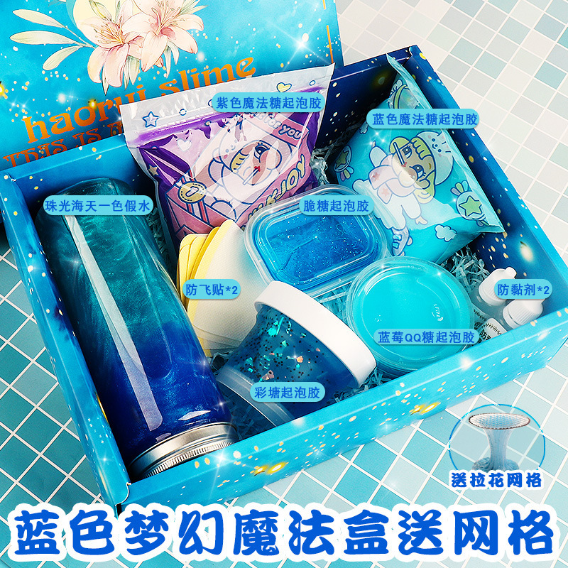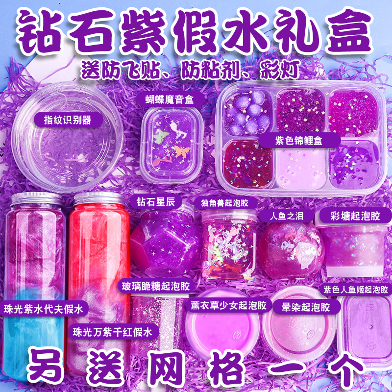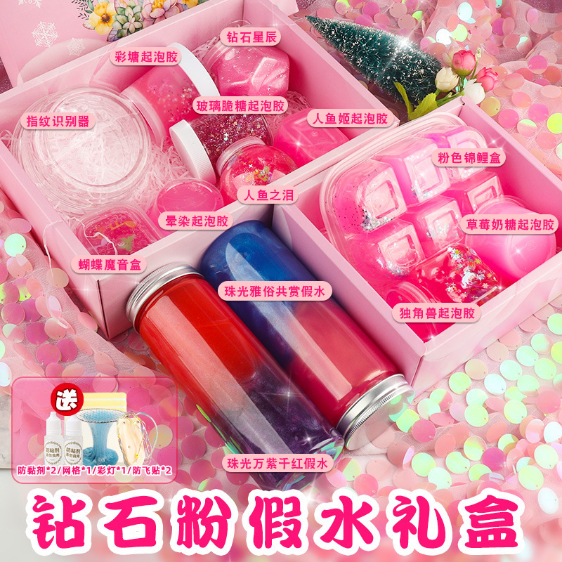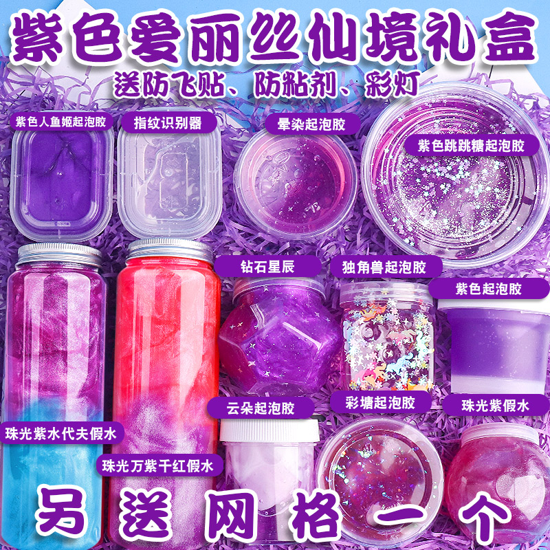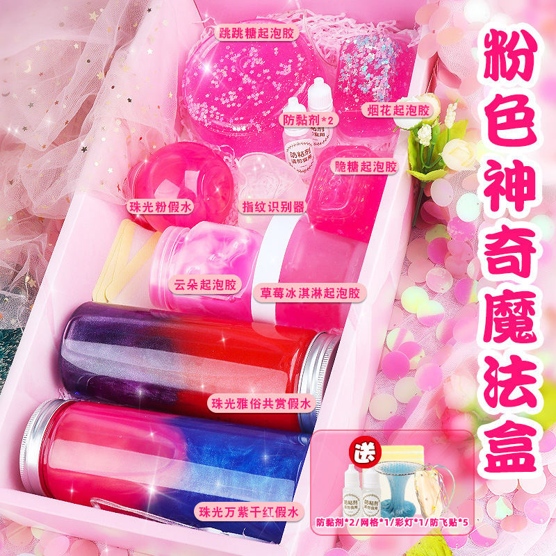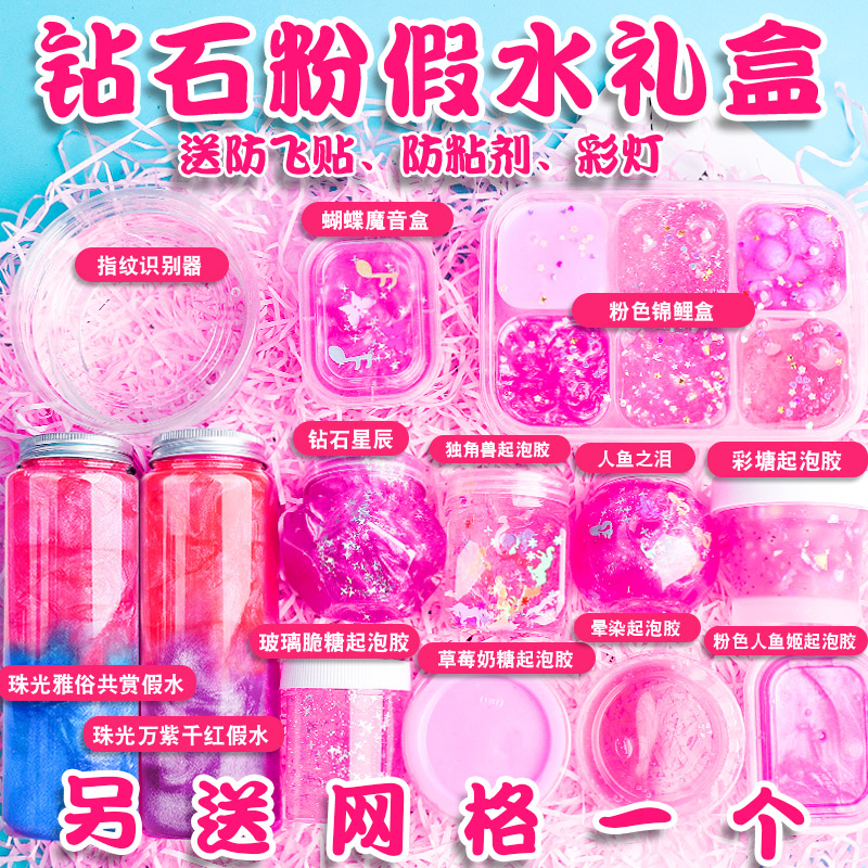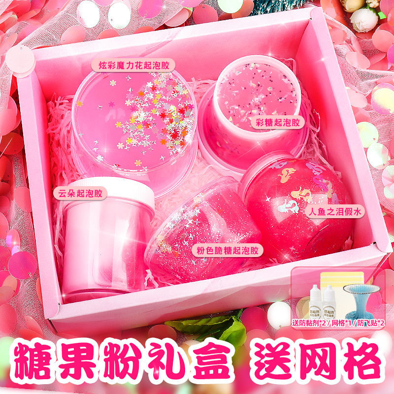Douyin 버블 접착제 어린이 안전 가짜 물 점액 세트 소녀 버블 접착제 크리스탈 진흙 장난감 새해 Qinzhi