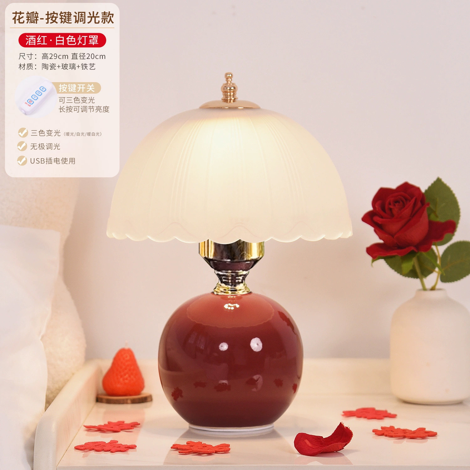 크림 스타일 하이 엔드 라이트 럭셔리 테이블 램프 침실 장미 침대 옆 테이블 분위기 램프 웨딩 크리 에이 티브 따뜻한 야간 조명