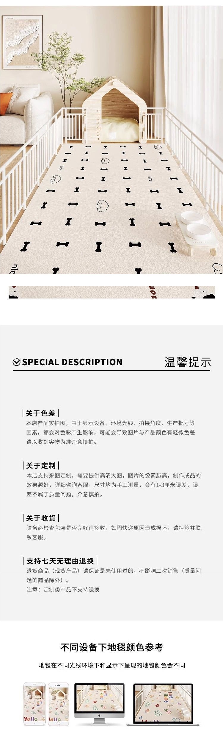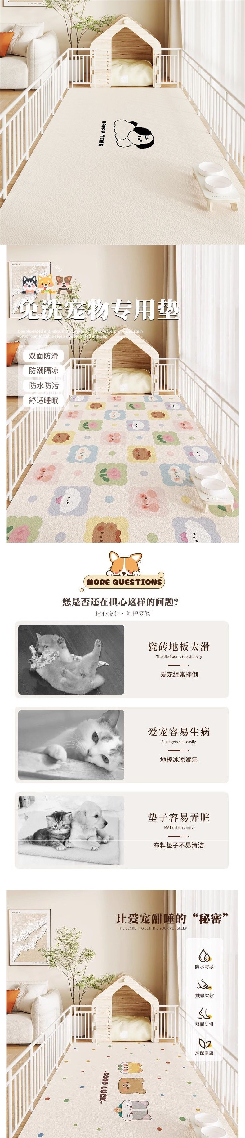 • 60x120cm [양면 미끄럼 방지, 귀여운 애완동물 보호]