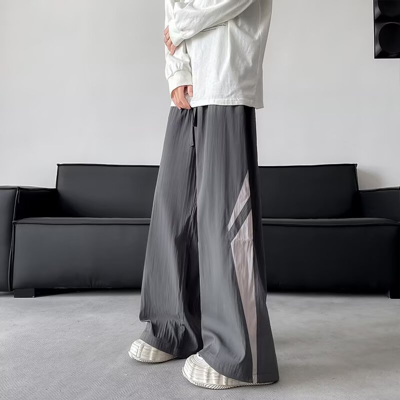 여름 얇은 속건성 아이스 실크 바지 남성용 미국 패션 브랜드 야외 등산 바지 루즈 스트레이트 캐주얼 바지