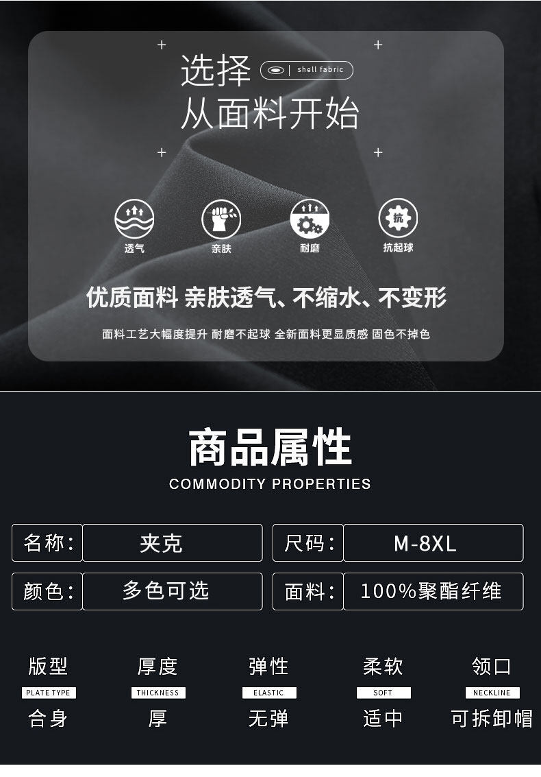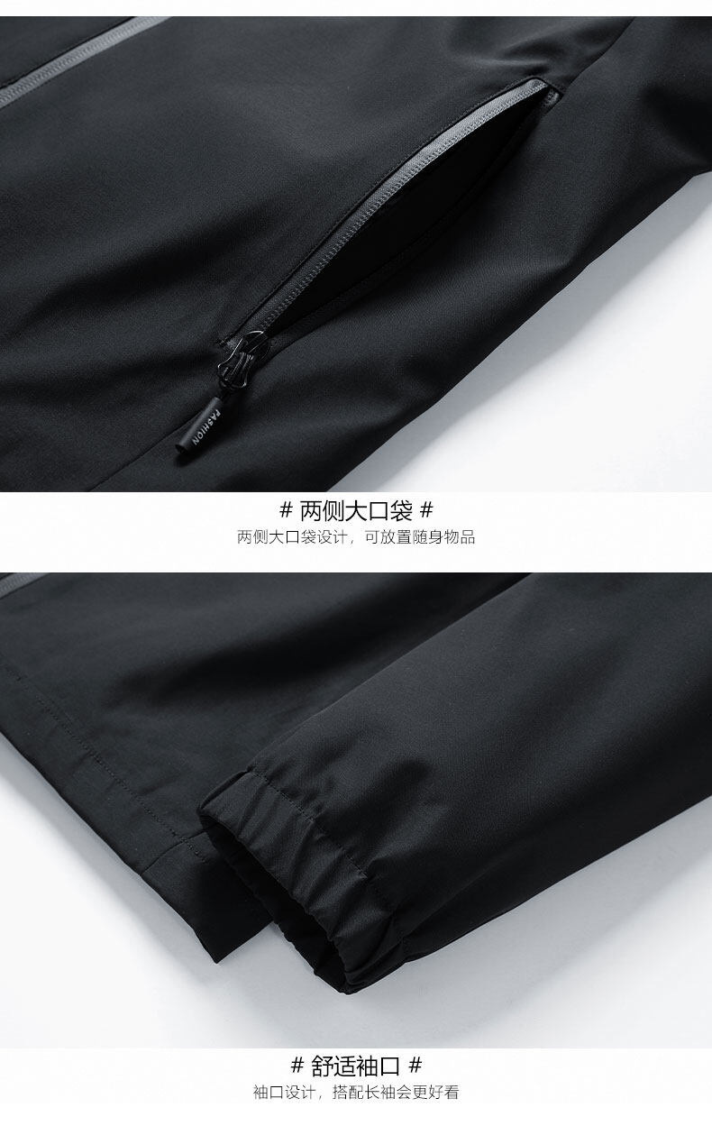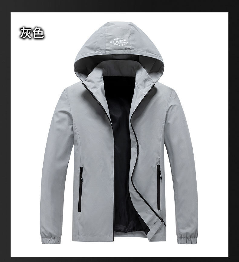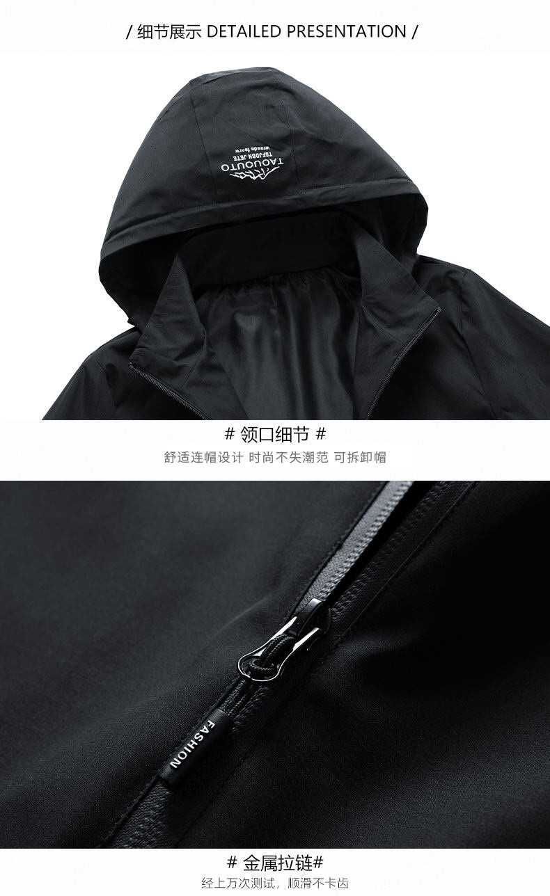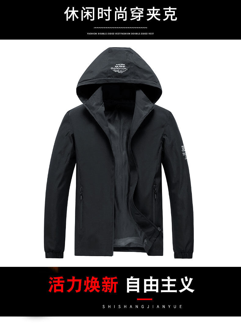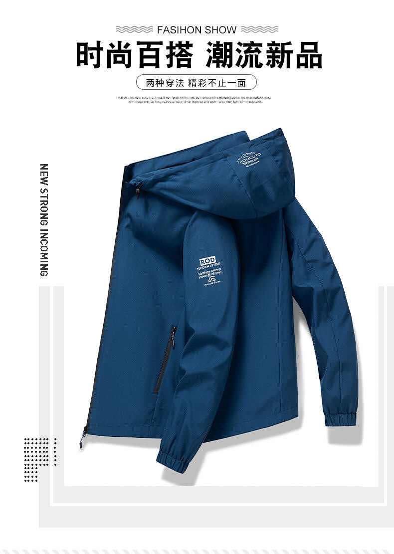 男士夹克连帽外套春秋款户外冲锋衣休闲夹克男可脱帽衣服潮流外套