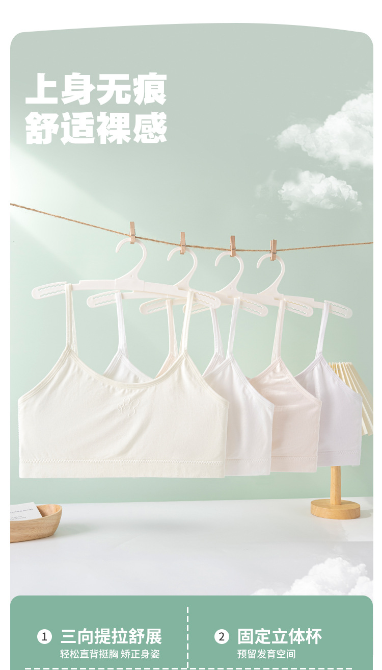 1단계 여아 속옷, 중, 고등학생 여아 조끼, 발달기 고정컵, 돌출방지 편안한 브라