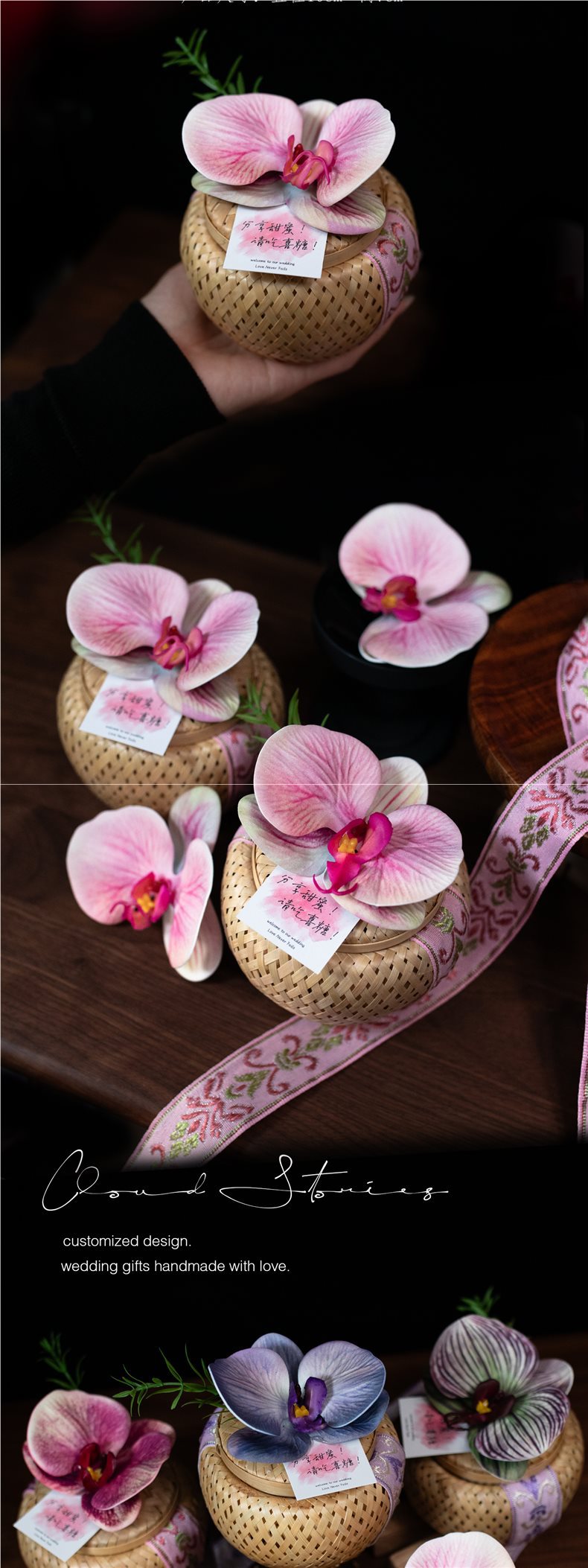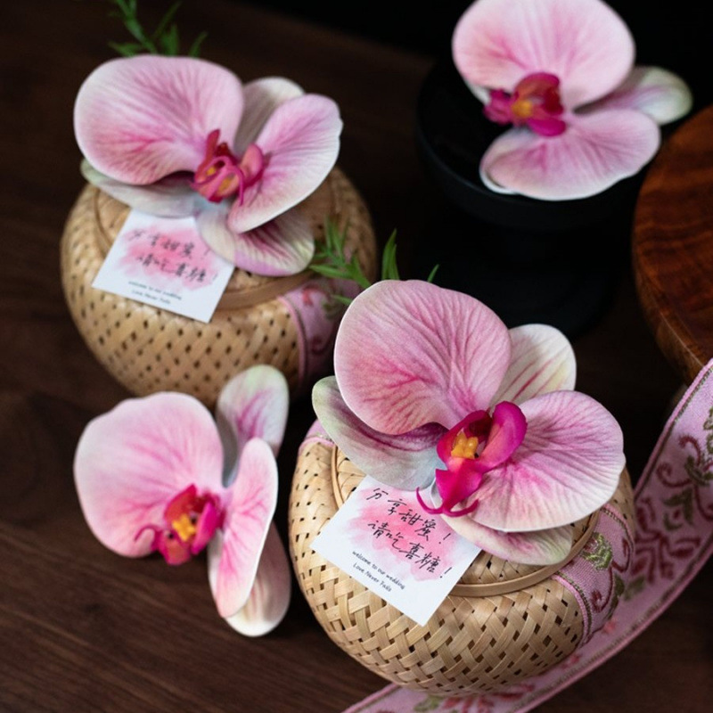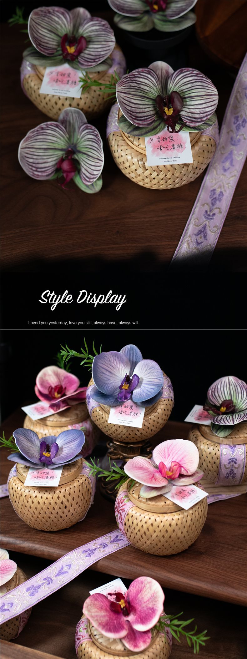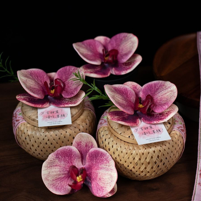 새로운 중국 스타일의 대나무 바구니 웨딩 사탕 상자 나비 난초 감각 장식품 결혼식 약혼 장식 배열 웨딩 동반자 선물 상자
