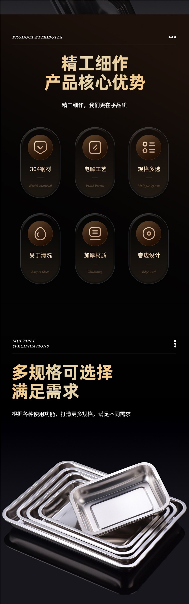 식품 등급 304 스테인레스 스틸 트레이 직사각형 상업용 사각형 접시 가정용 생선 접시 바베큐 접시 철 접시 찜 밥 접시