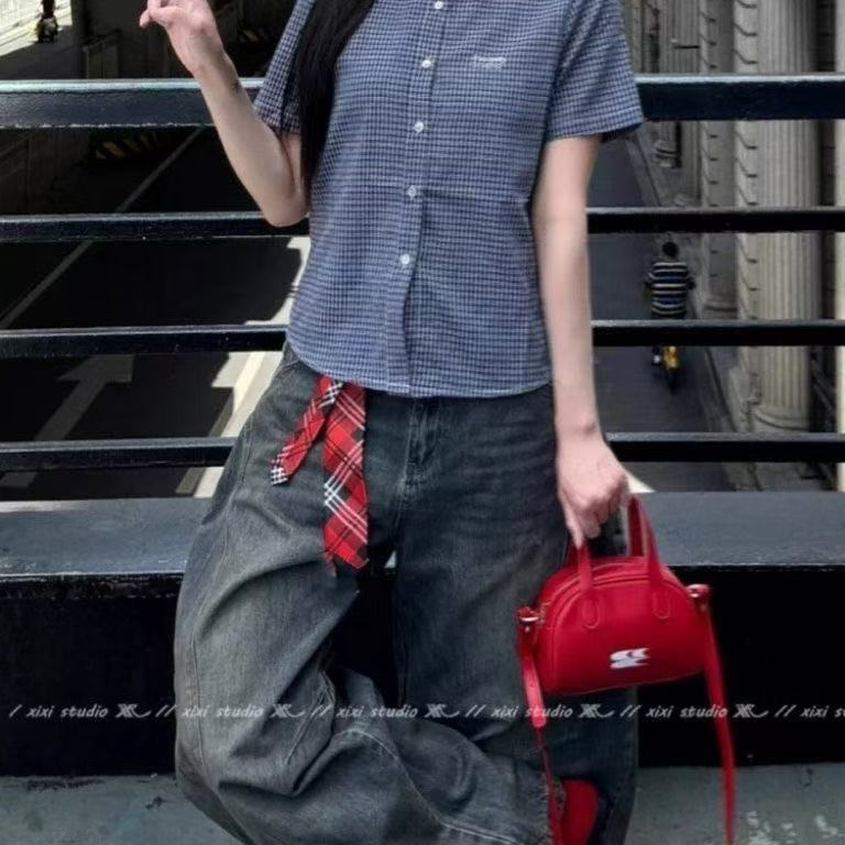 아메리칸 체크무늬, 영국풍 스트리트웨어, 롱 실크 스카프, 핫하고 쿨한 벨트 스카프, 여성용 스카프