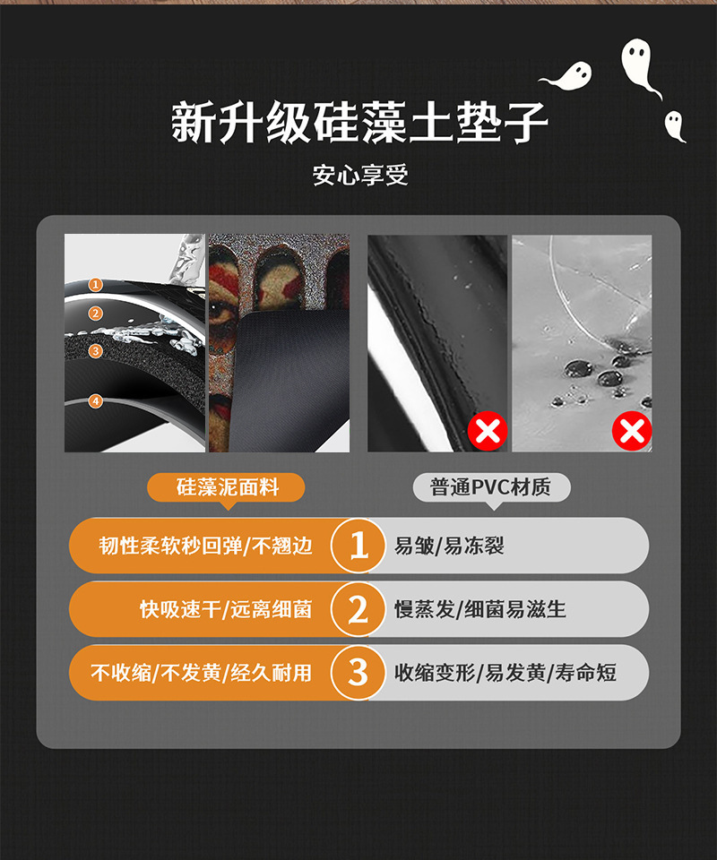 국경 간 배송 라벨링 할로윈 참신 욕실 규조토 진흙 미끄럼 방지 내마모성 흡수성 매트 욕실 문 매트