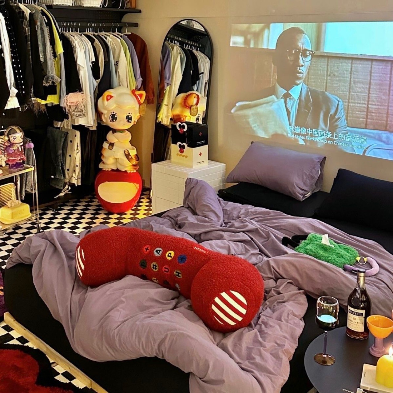 Zhang Yuan의 긴 베개 생일 선물 플러시 장식 장식품 빨간 인형 소파 쿠션 전화스토어 가기