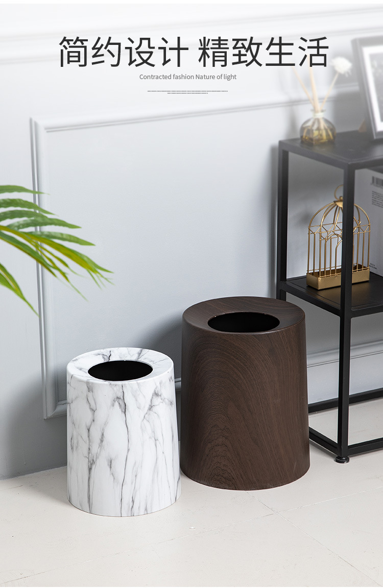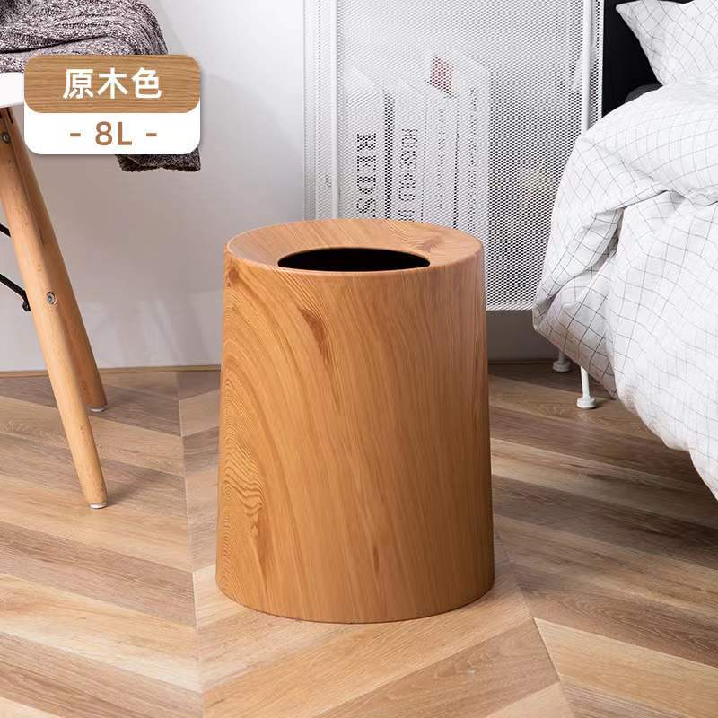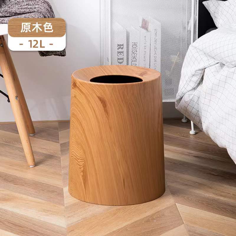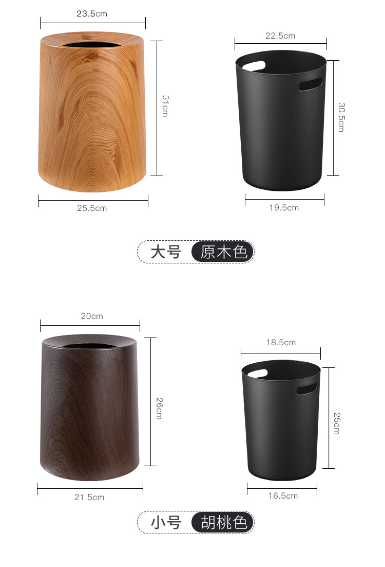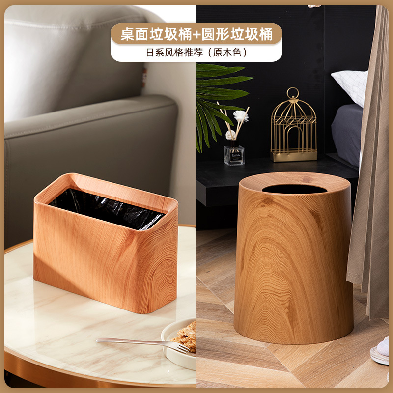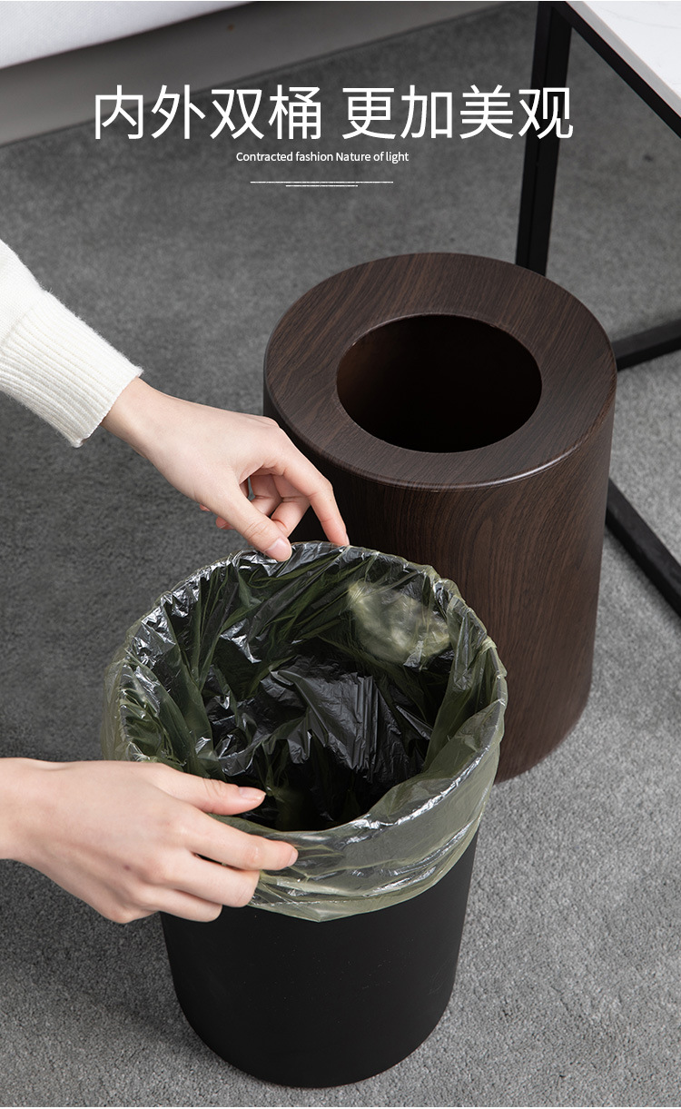 북유럽 쓰레기통 가정용 더블 레이어 거실 침실 욕실 화장실 모조 나뭇결 뚜껑없는 종이 바구니 새로운 중국 스타일