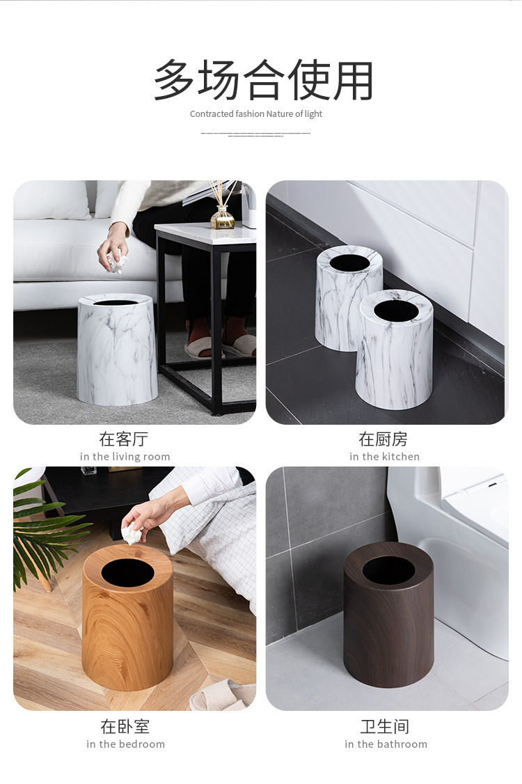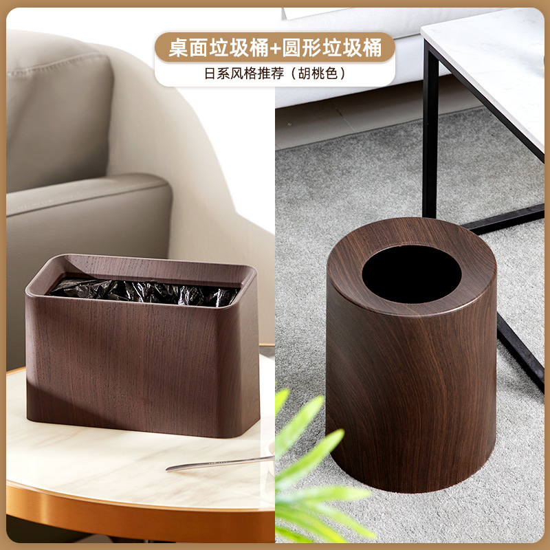 북유럽 쓰레기통 가정용 더블 레이어 거실 침실 욕실 화장실 모조 나뭇결 뚜껑없는 종이 바구니 새로운 중국 스타일스토어 가기