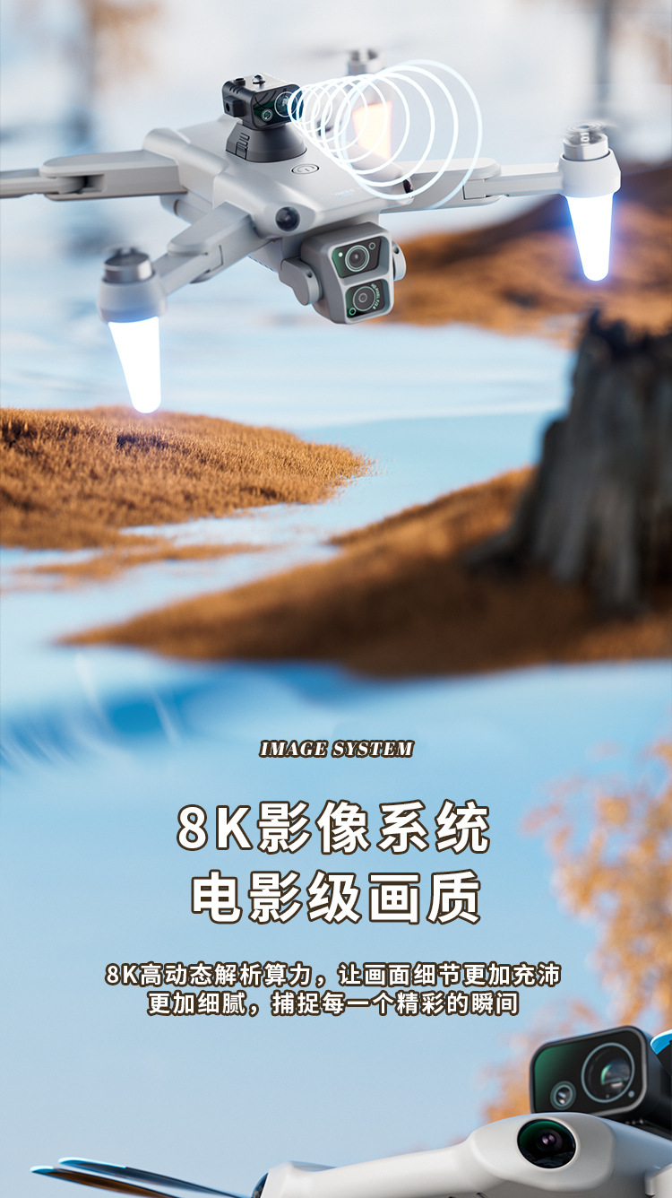 • 브러시리스 버전 그레이 6K 리모콘 렌즈 듀얼 카메라 540 ° 장애물 회피 - 수평 및 수직 화면 촬영, 광학 흐름 호버 + 전기 5G 이미지 전송 1개 [무료 보관 가방 + 오리지널 액세서리 + 3개
