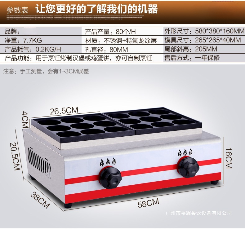 에그 버거 기계 스토브 상업용 가스 18 홀 중국 에그 케이크 기계 KFC 버거 기계 팥 케이크 기계