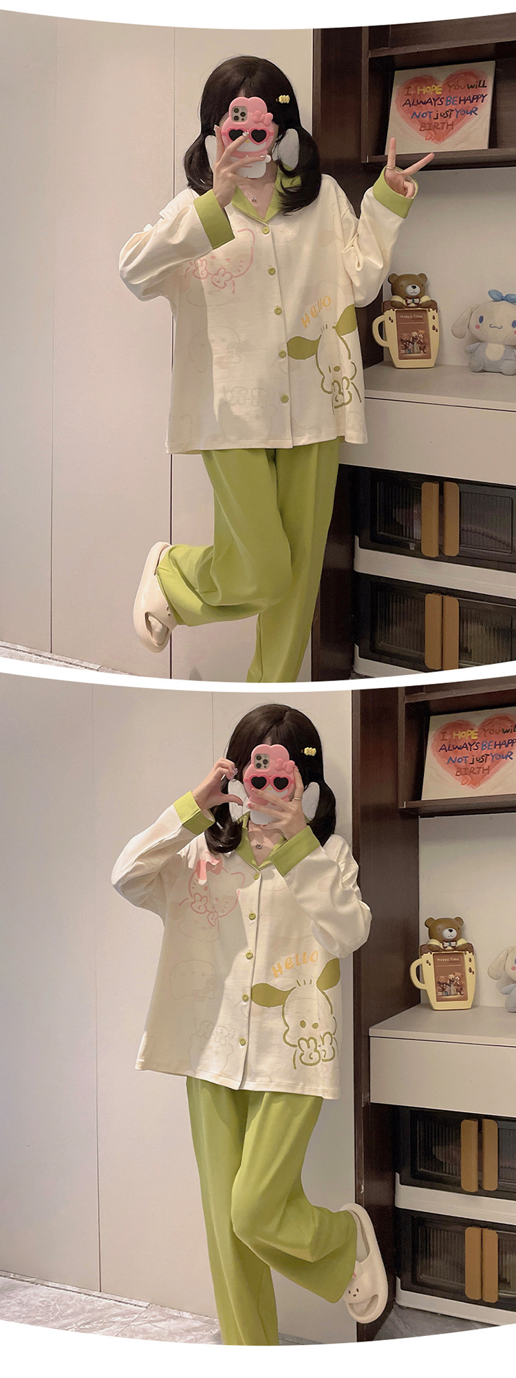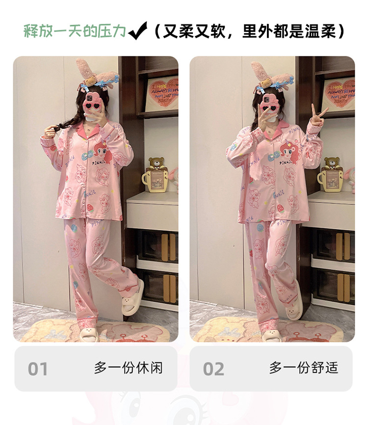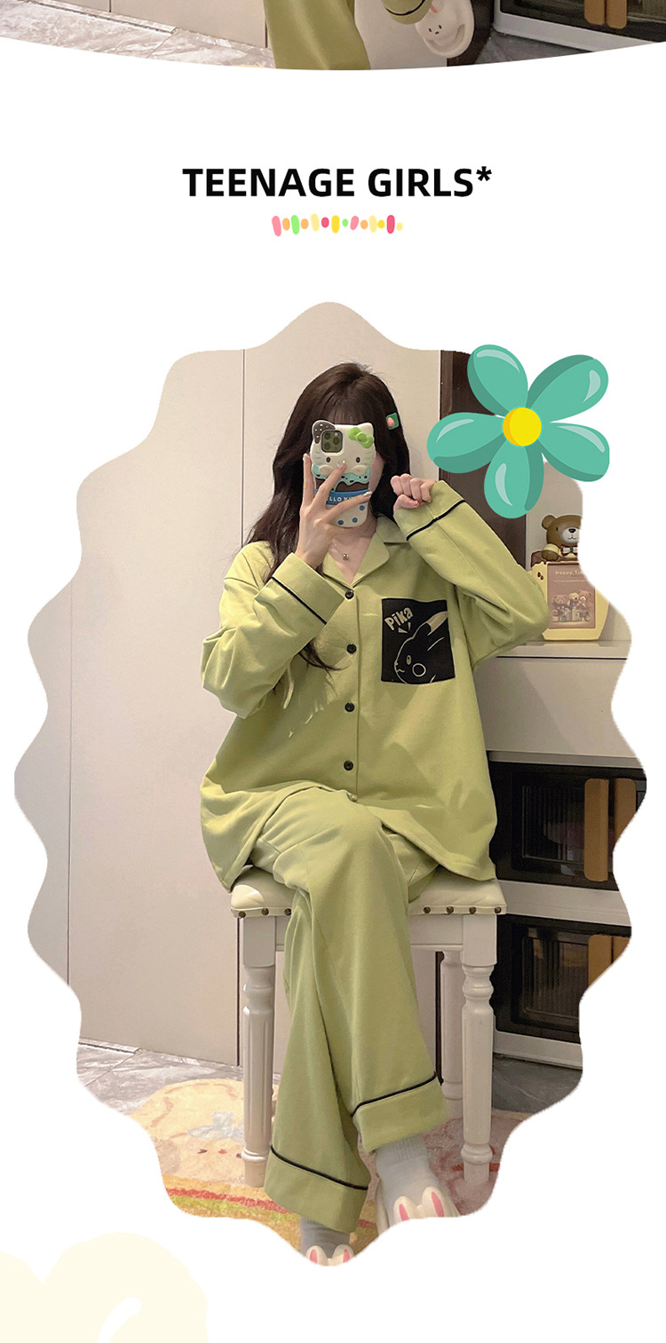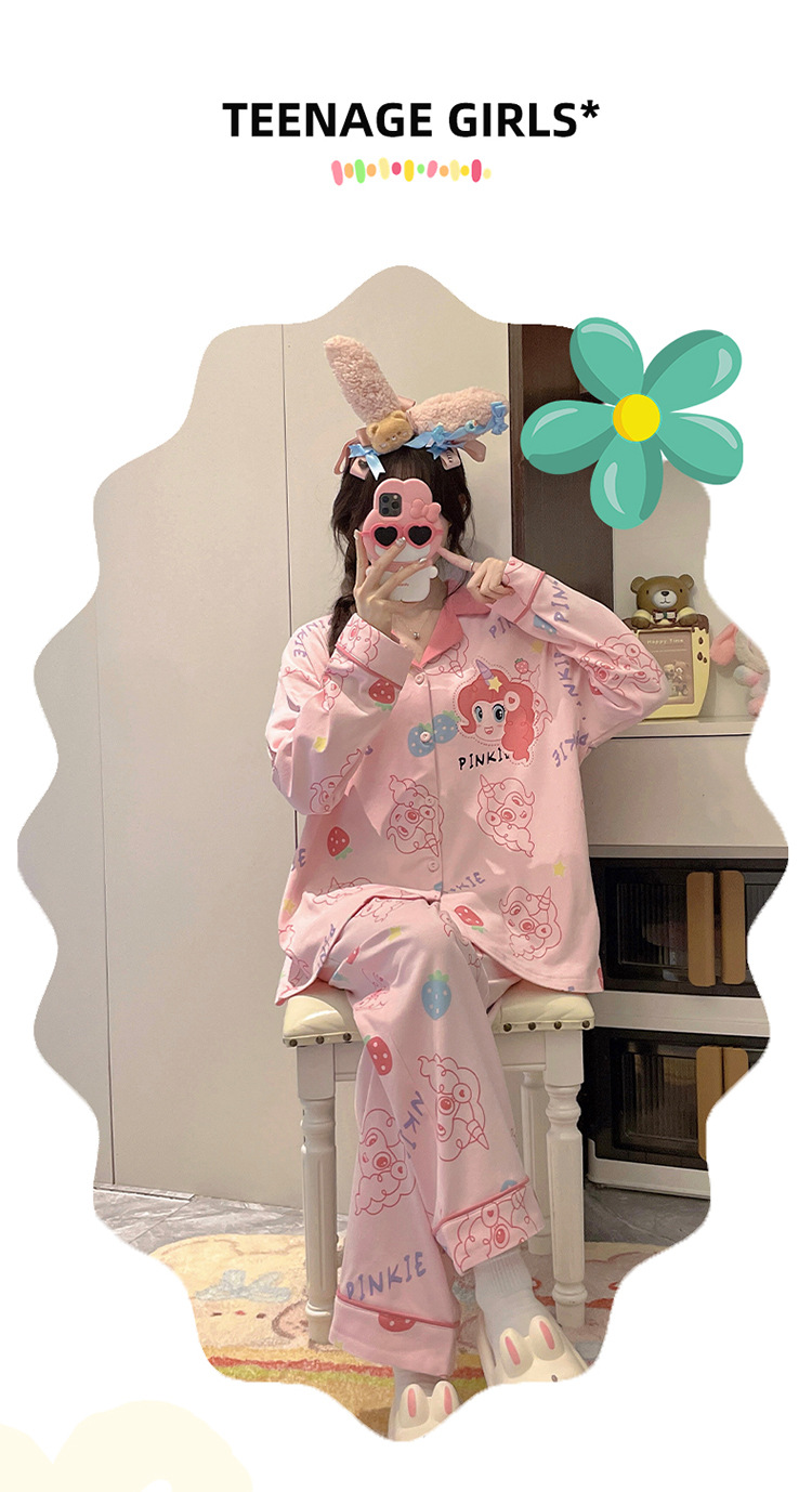 여자 잠옷 봄과 가을 면화 긴팔 어린이 가정 의류 여자 만화 Baoli 중대형 어린이 에어컨 의류 세트스토어 가기