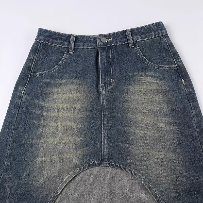 아메리칸 스트리트 핫걸 A라인 데님 스커트 여성 여름 하이웨이스트 워싱 디스트레스드 디자인 불규칙한 하프 스커트스토어 가기