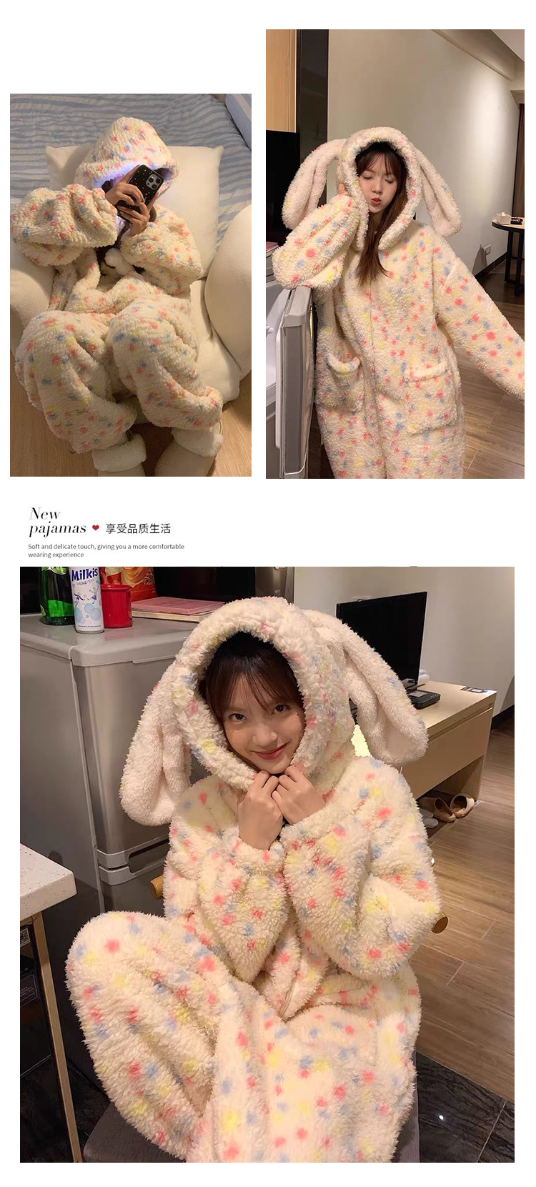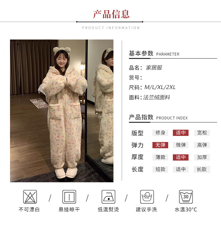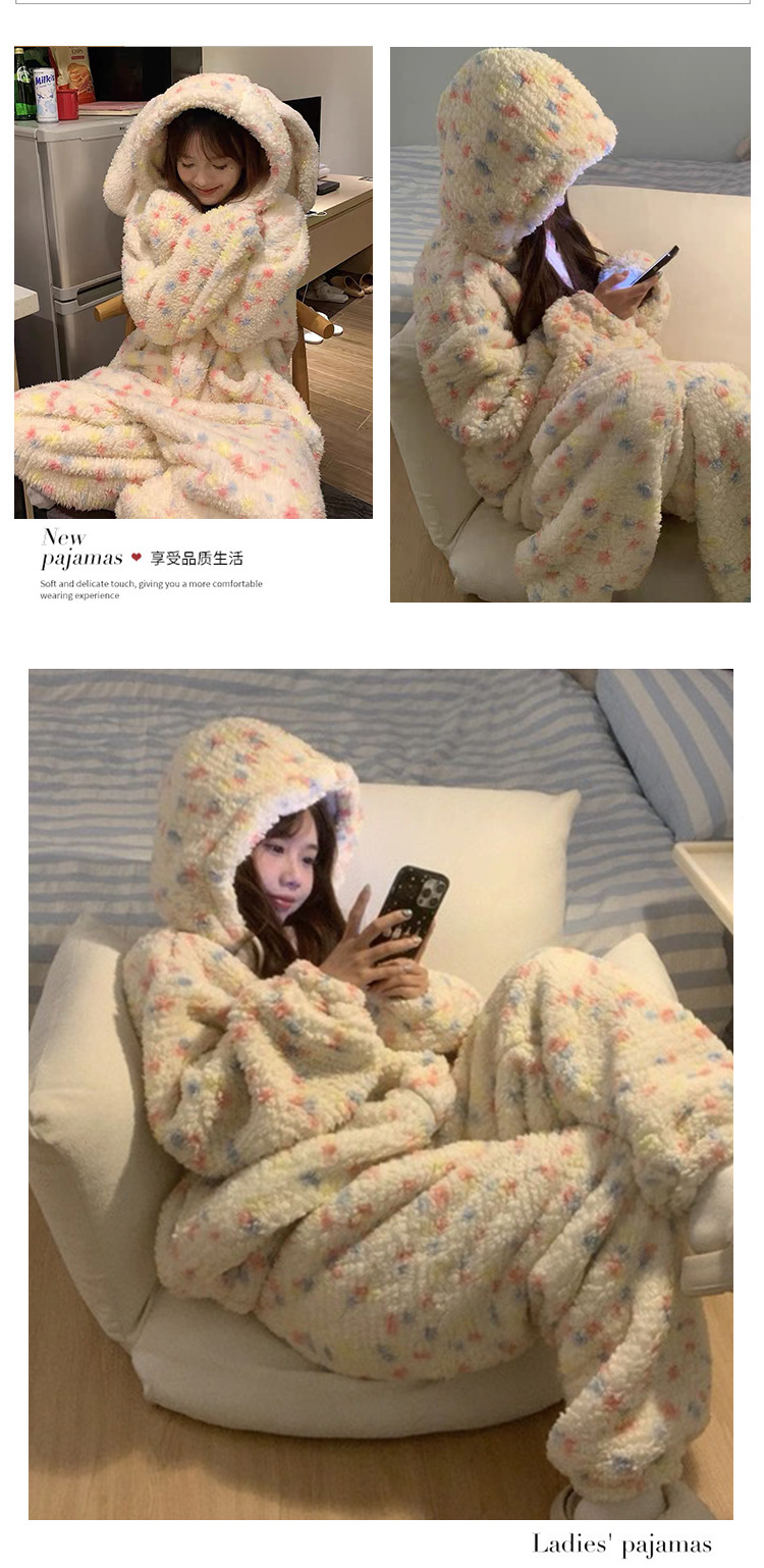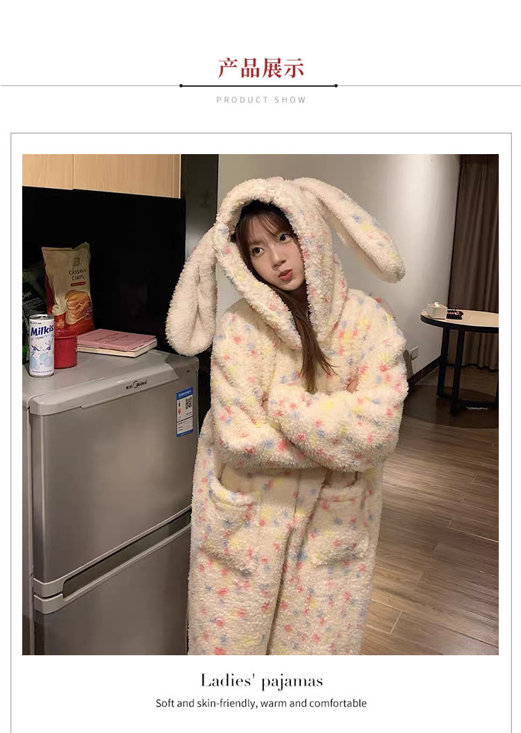 여성을위한 귀여운 토끼 귀 산호 벨벳 원피스 잠옷 겨울 벨벳 두꺼운 달콤한 가정 의류 2025 새로운 겨울스토어 가기