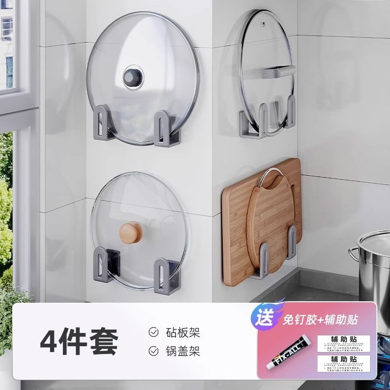 두꺼운 펀치없는 냄비 뚜껑 랙 주방 보관 랙 벽걸이 형 도마 랙 다기능 벽 보관