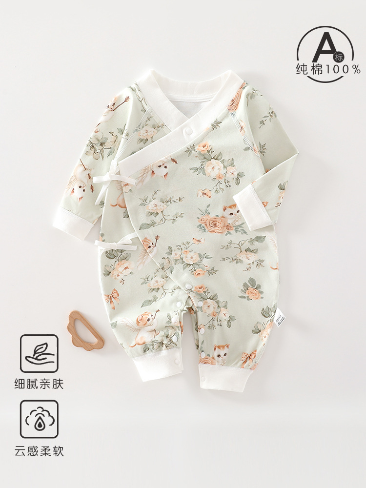 사계절 신생아옷, A급 면 밀착형 봄, 가을 베이비 점프수트, 배 보호 레이스업 스님복스토어 가기