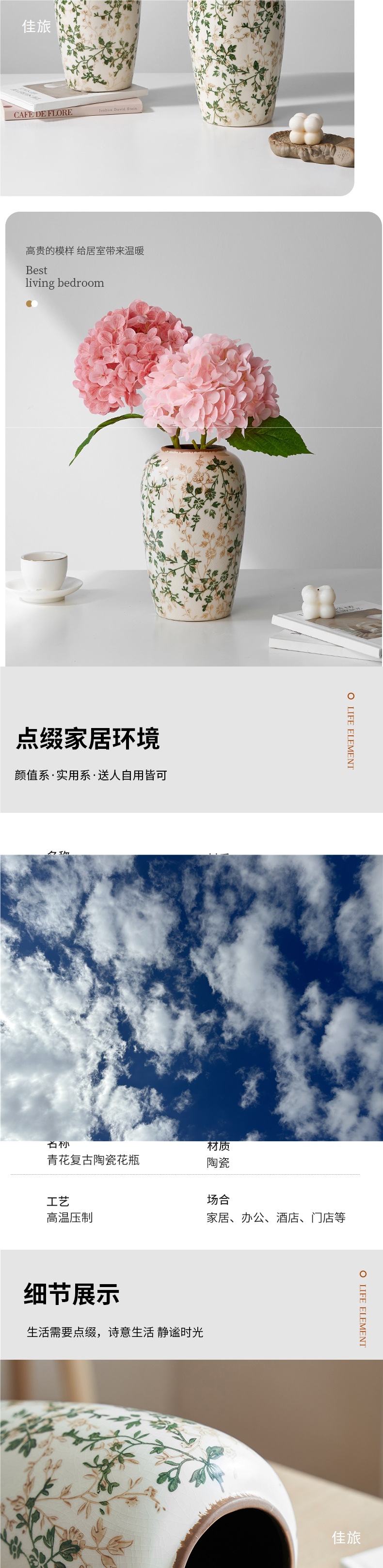 겨울 녹색 꽃병, 꽃, 복고풍 세라믹 대형 장식품, 거실 장식, 수경 꽃꽂이, 창의적인 목가적 스타일, 새로운 스타일스토어 가기