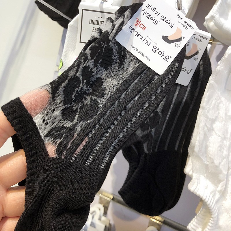 한국 glalalane 여름 보트 양말 프렌치 메쉬 꽃 여성 얇은면 양말 통기성 메쉬 안티 탈착식 보이지 않는