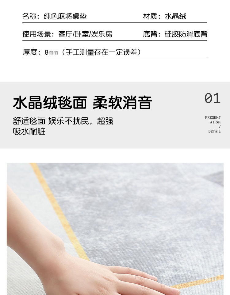 마작 식탁보 교체, 축제용 매트, 두꺼운 미끄럼 방지 커버 천, 손으로 문질러 만든 가정용 식탁보, 기타 사각형 단색