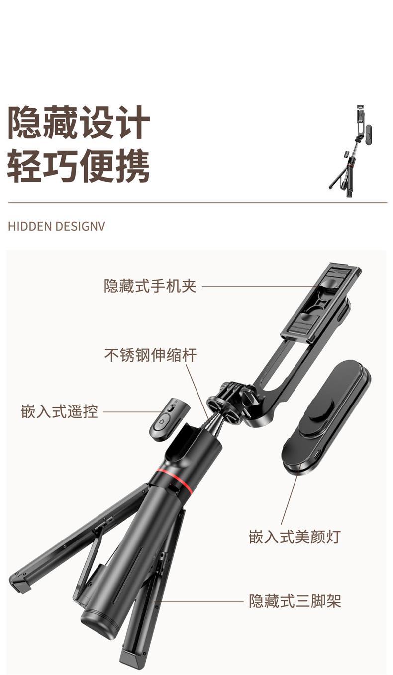 L15 분리형 필 라이트 램프 블루투스 원격 제어 텔레스코픽 셀카 스틱 확장 강화 삼각대 셀카 스틱