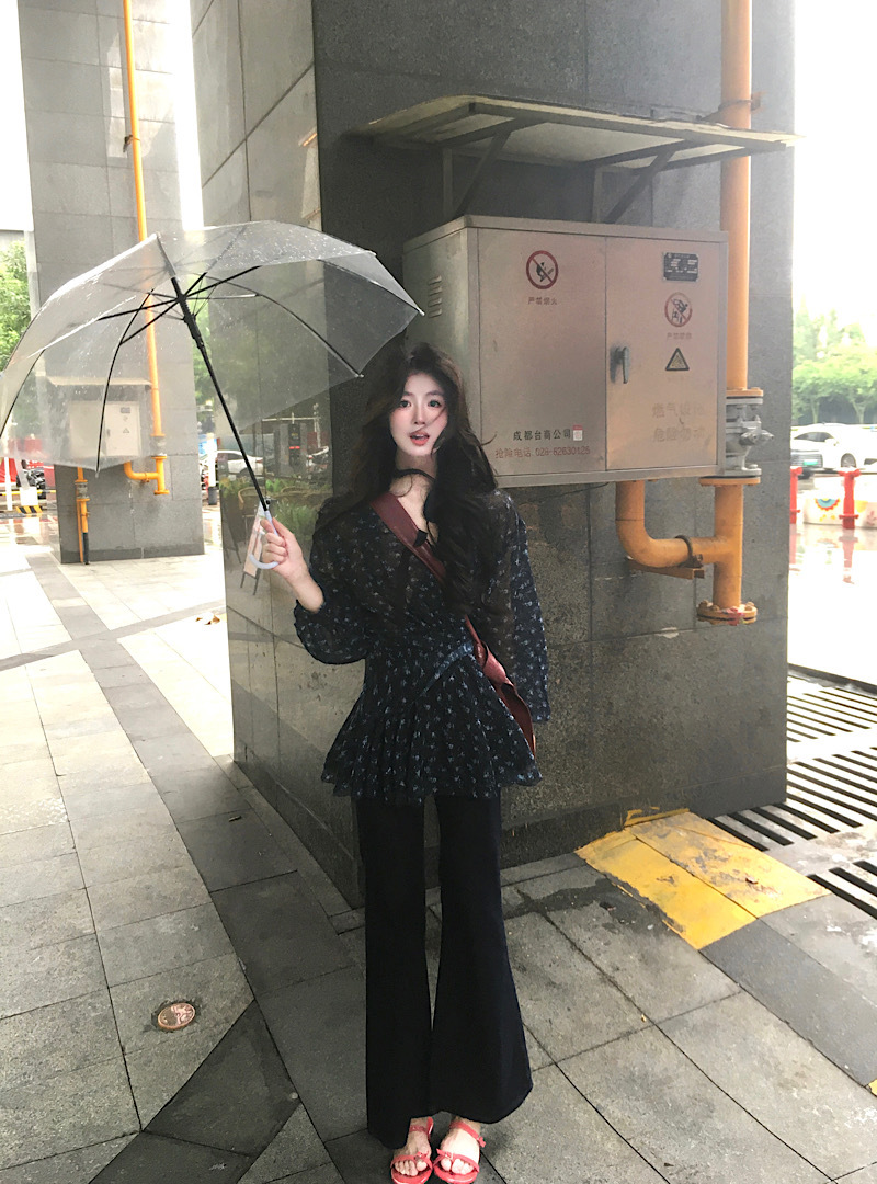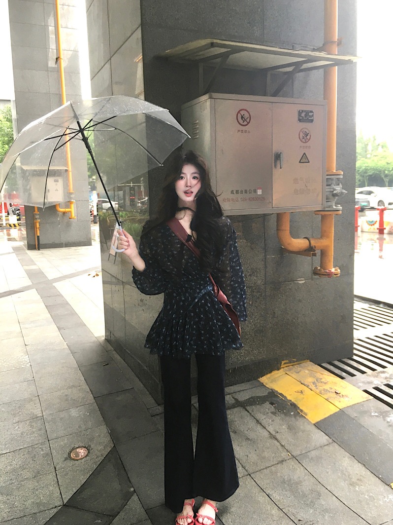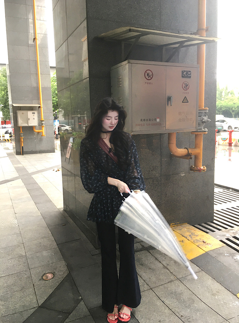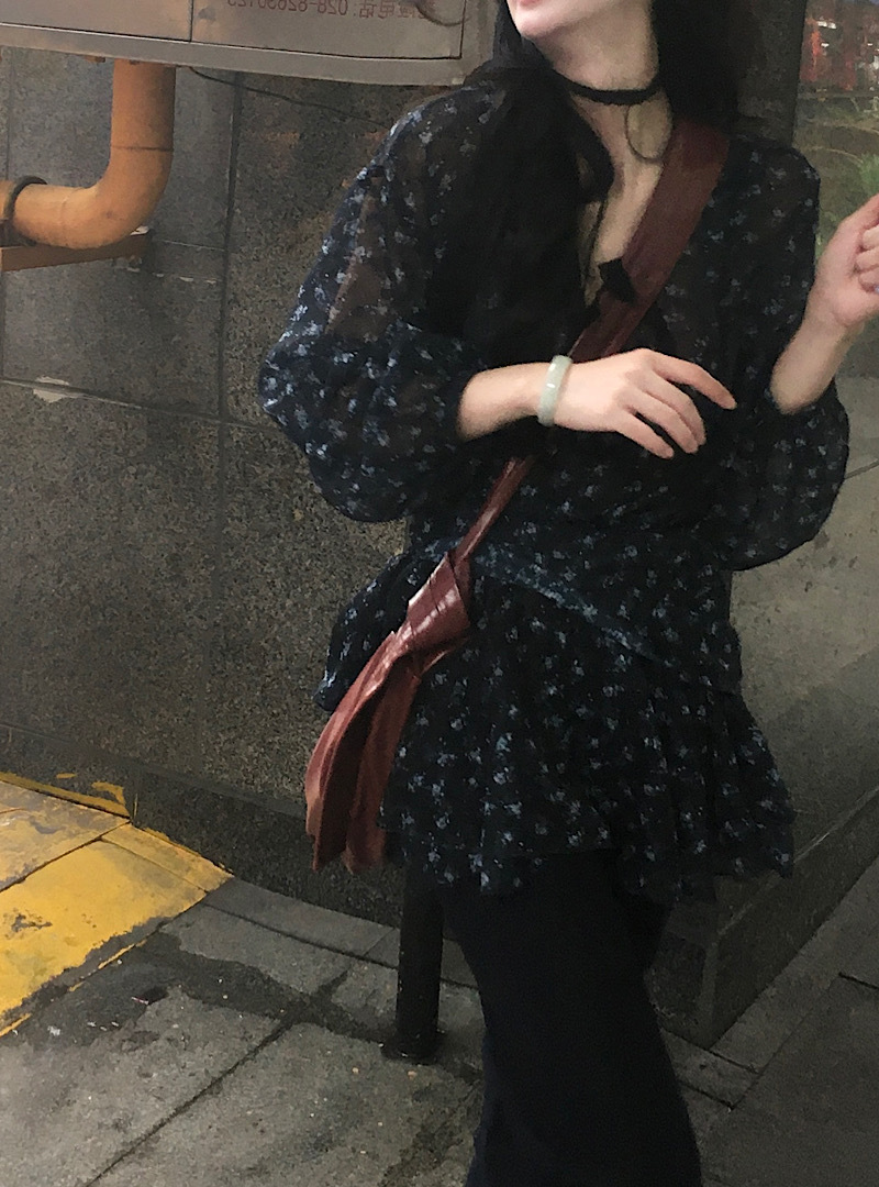여성을위한 프랑스 얇은 꽃 무늬 v 넥 쉬폰 셔츠 2025 여름 새로운 스타일 허리 슬리밍 복고풍 긴팔 셔츠